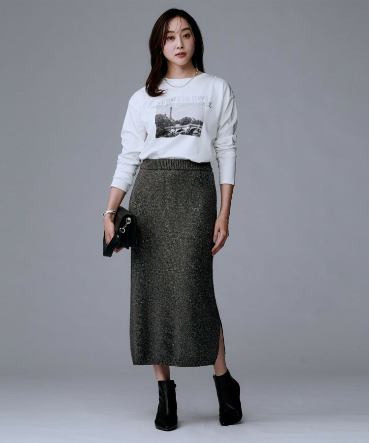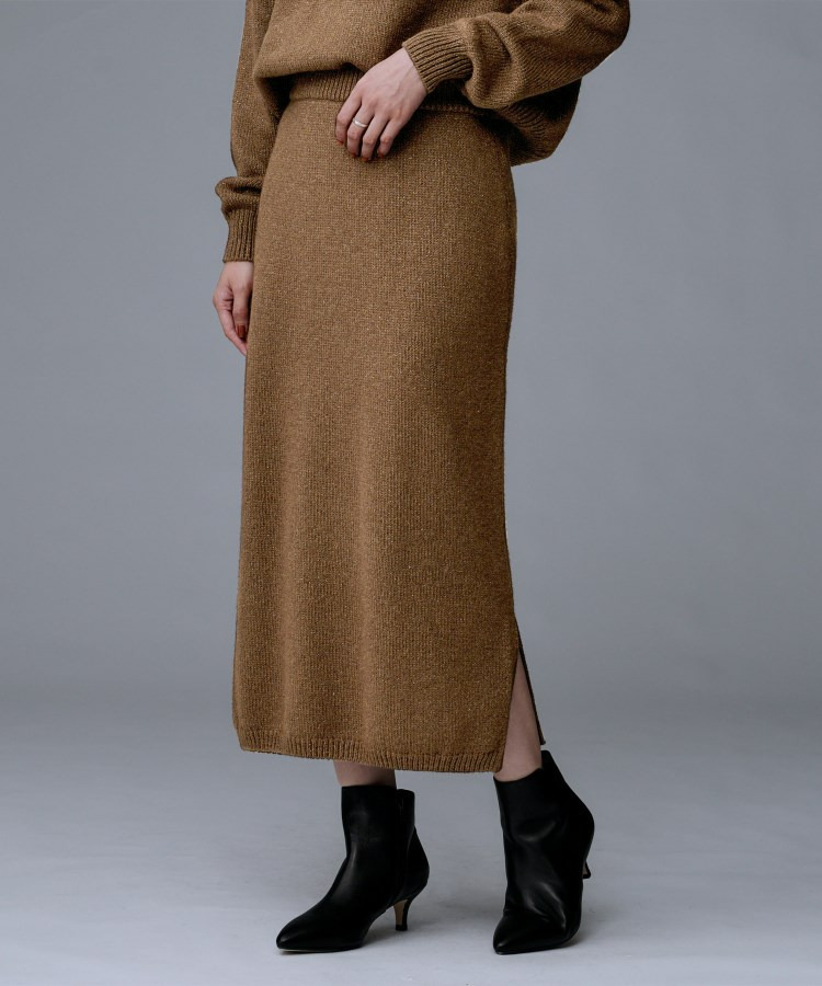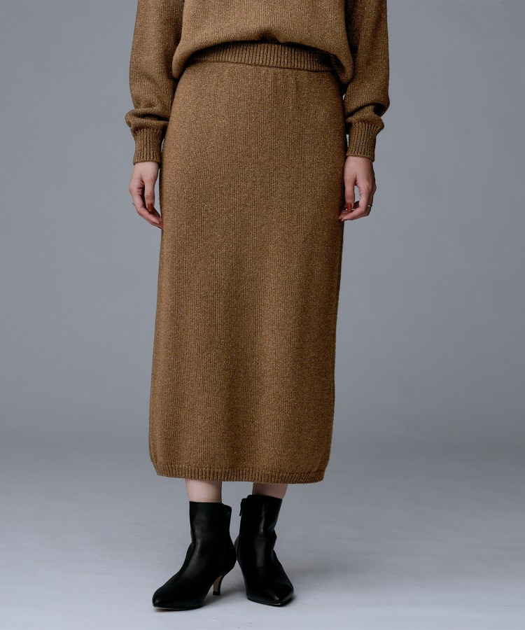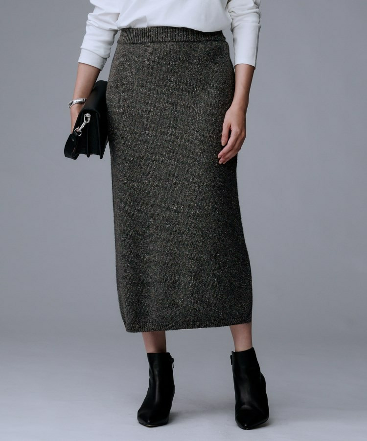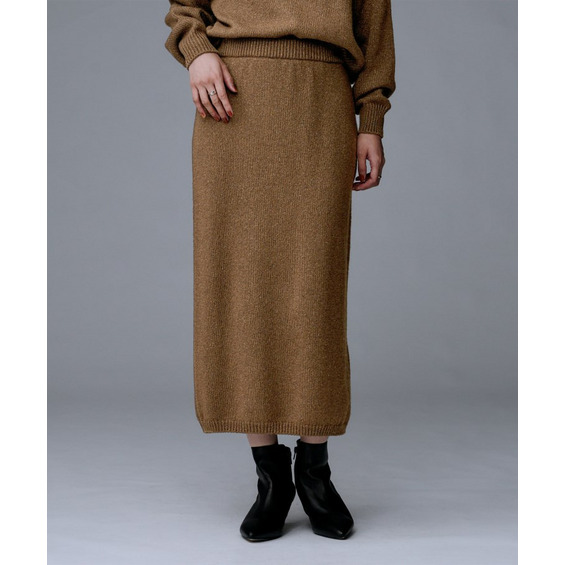 ラメの光沢感でニットスカートは綺麗めにも着回せるため、多様なシーンに対応したコーディネートが可能です。
