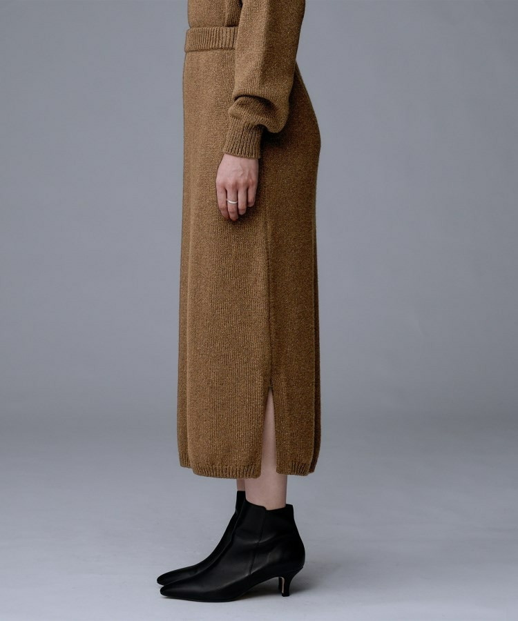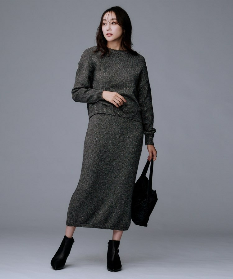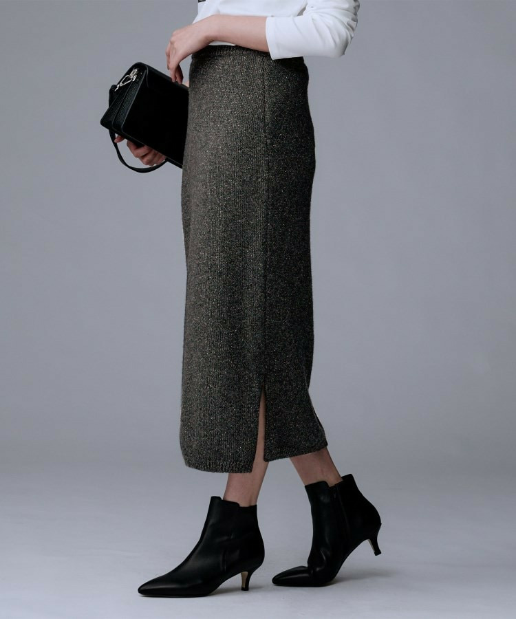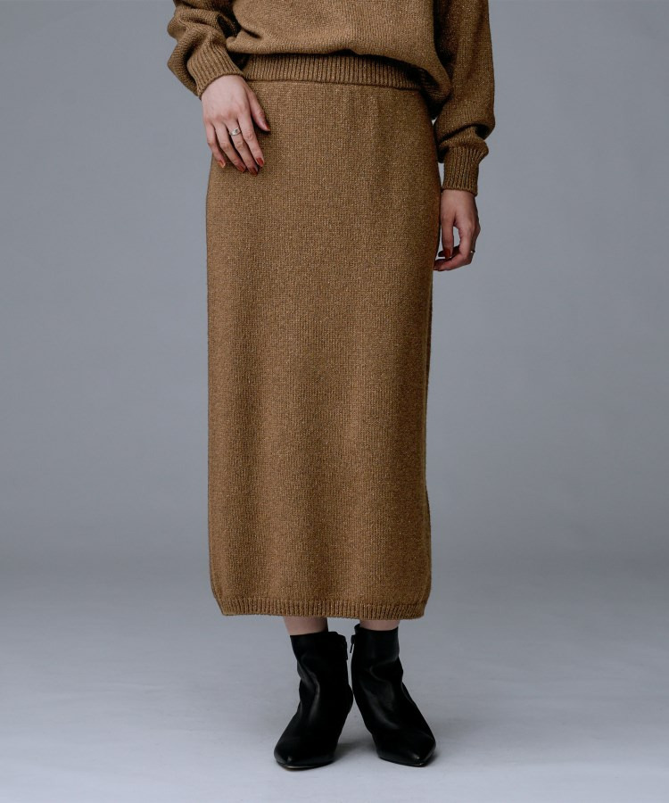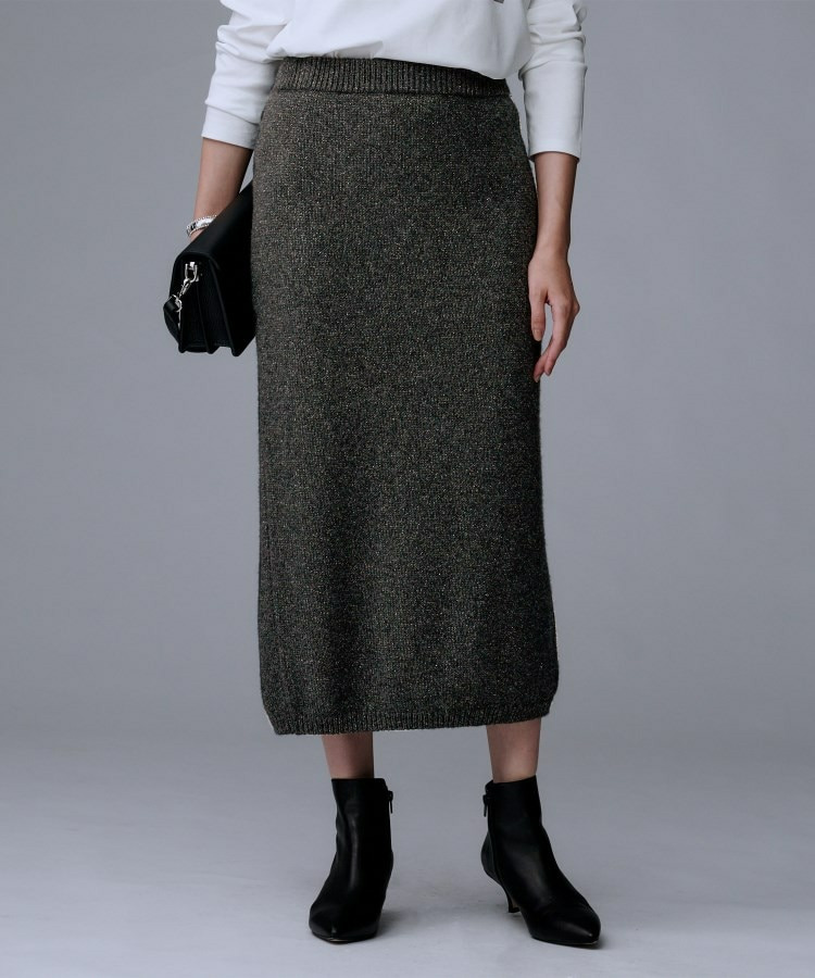 ラメの光沢感でニットスカートは綺麗めにも着回せるため、多様なシーンに対応したコーディネートが可能です。