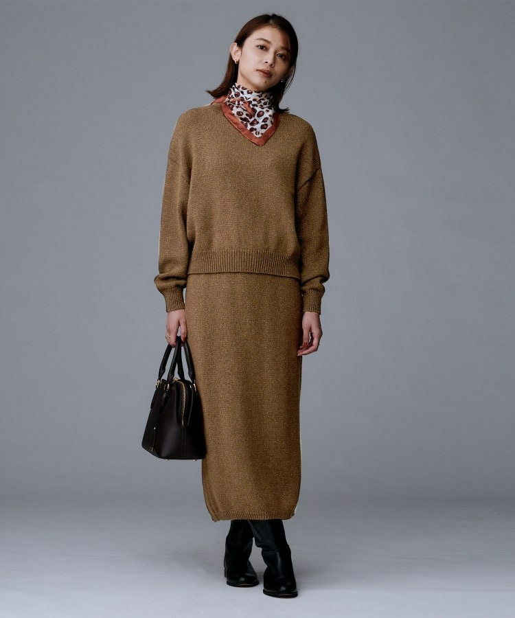 ニットアップはもちろん、単体でブラウスにジャケットを軽く羽織ってソックスにヒールやロングブーツに合わせて。