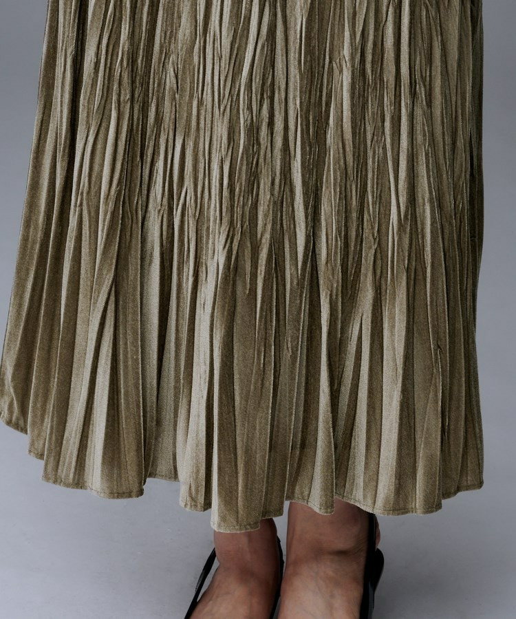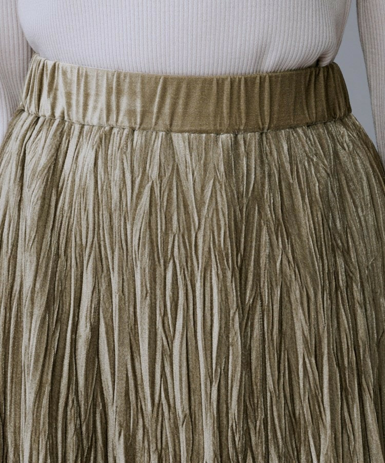 【ウエスト総ゴム/ロング丈】ランダムプリーツベロアスカート