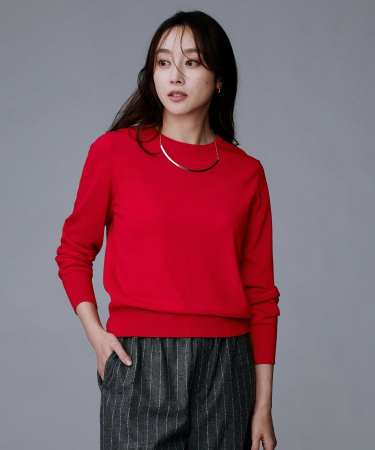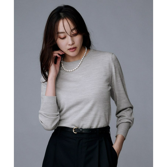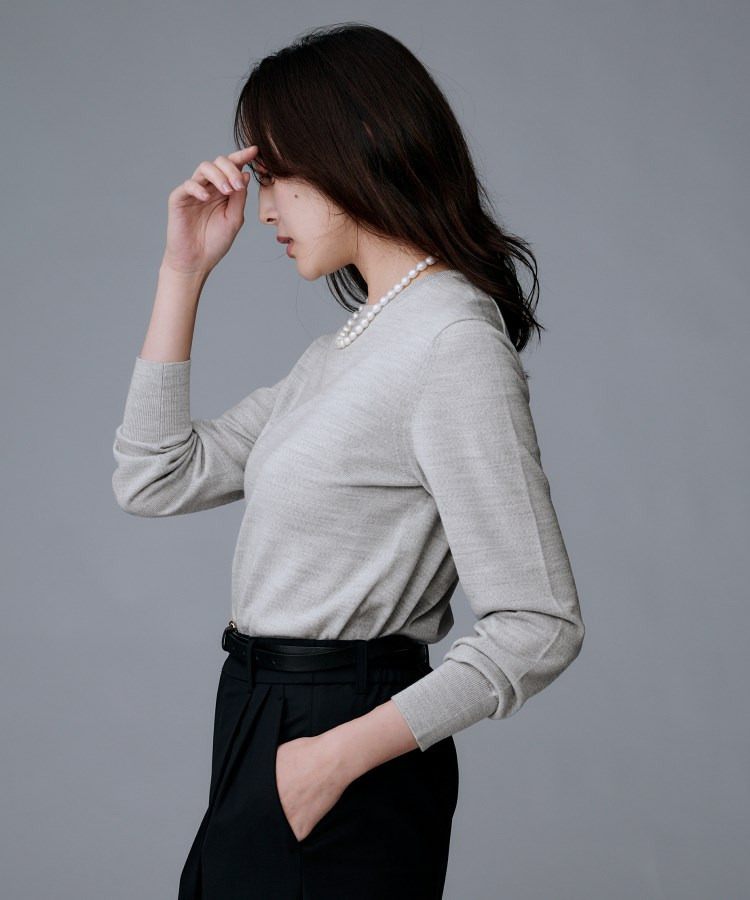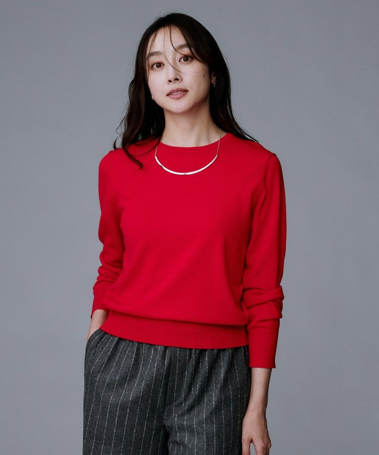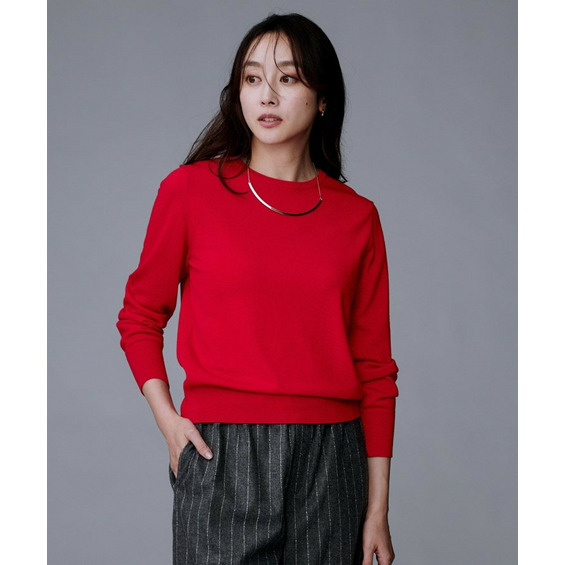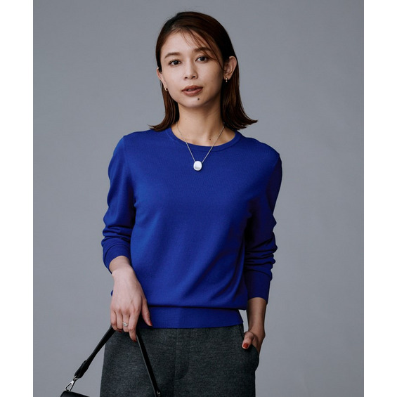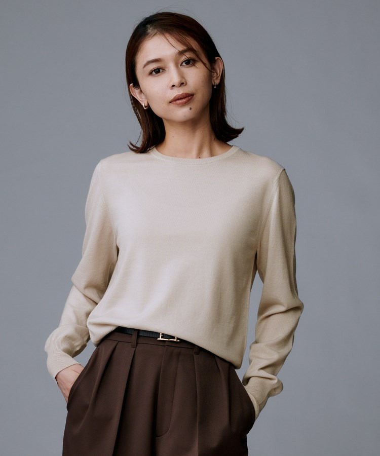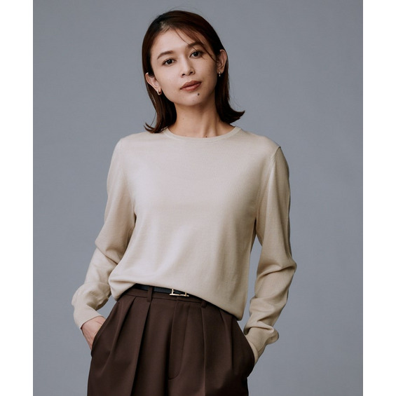 クルーネックでコンパクト過ぎず、程よくゆとりを持たせたサイジングがキレイめな印象のニットです。