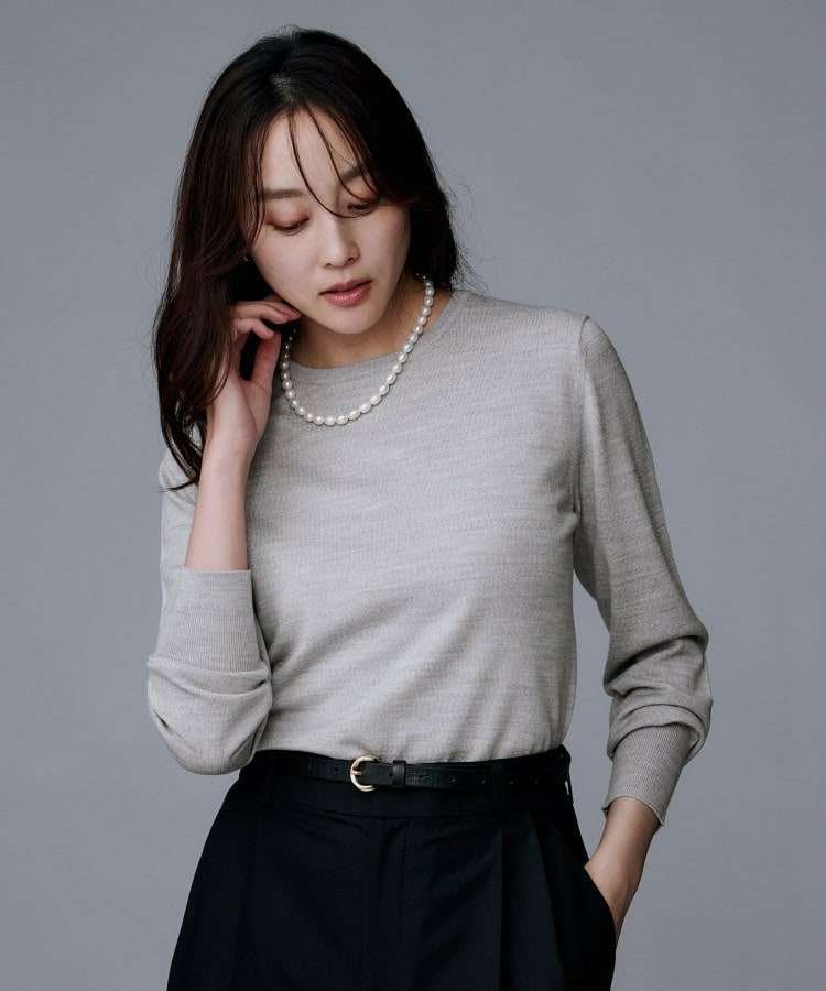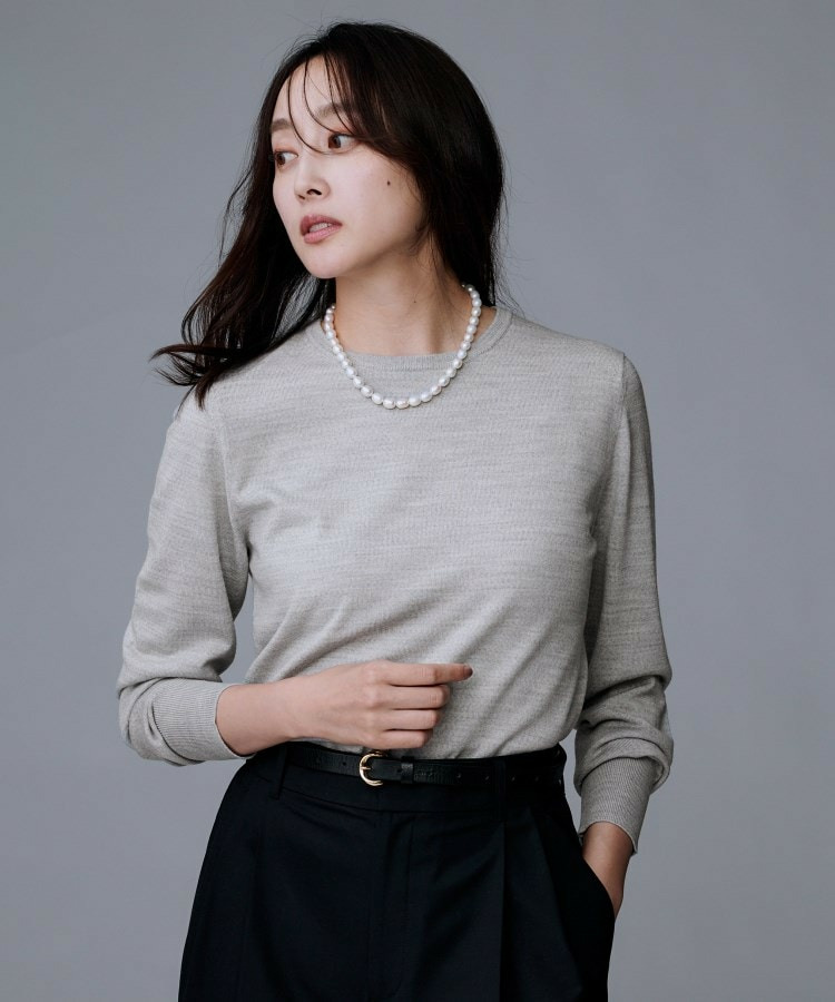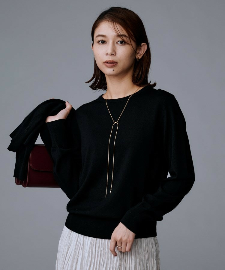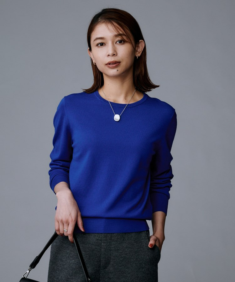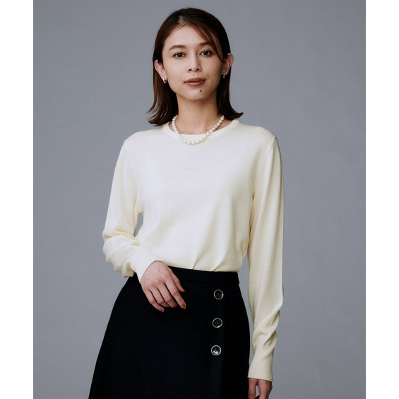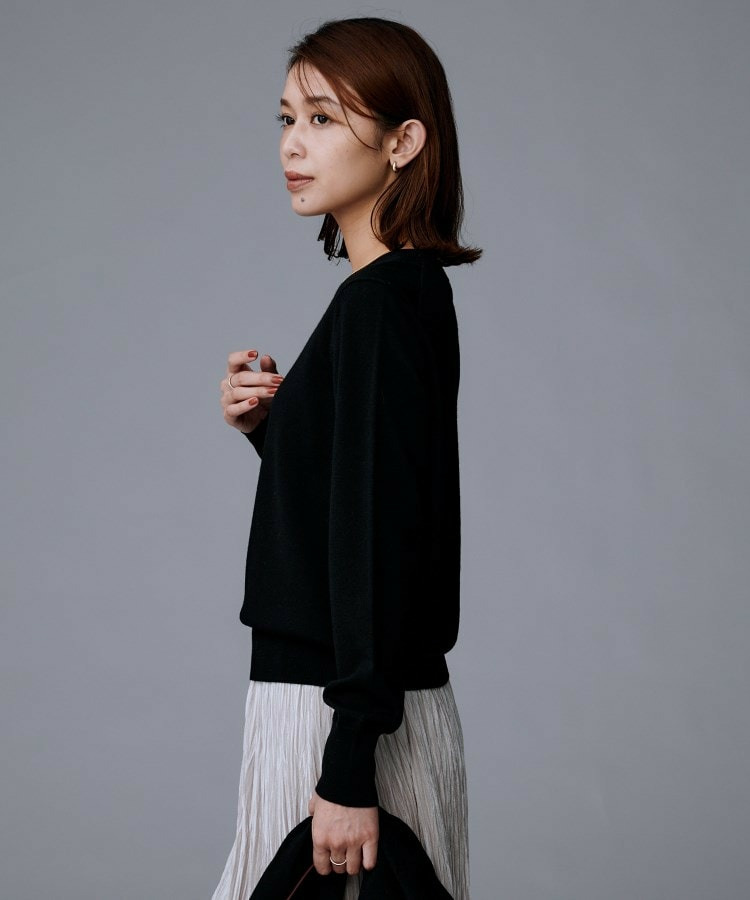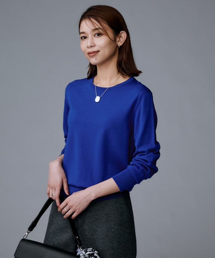 クルーネックでコンパクト過ぎず、程よくゆとりを持たせたサイジングがキレイめな印象のニットです。
