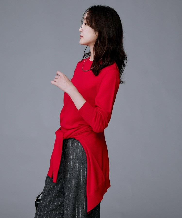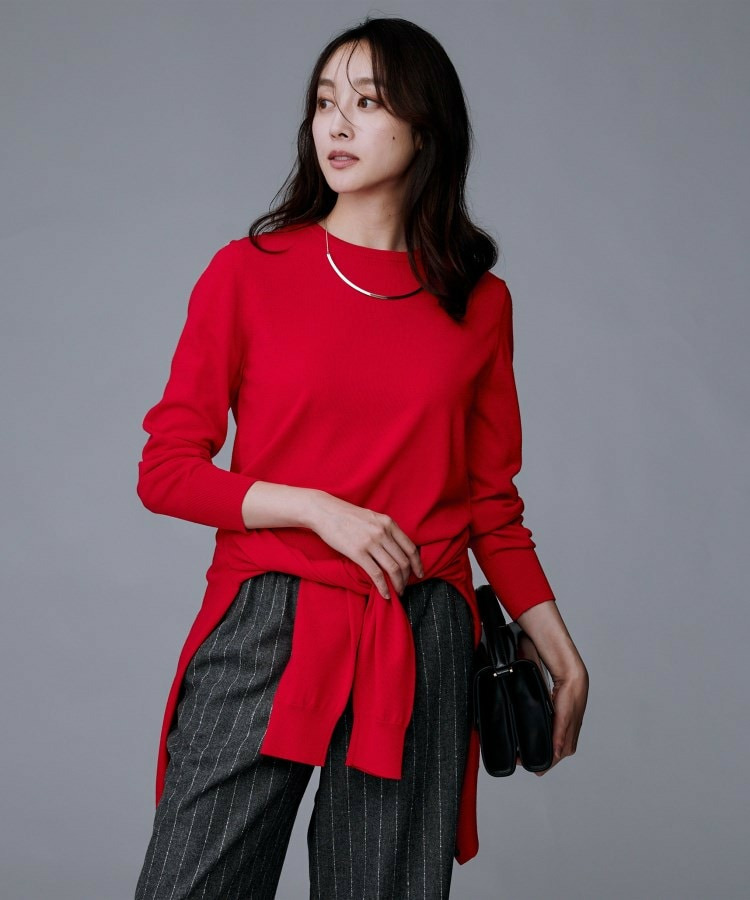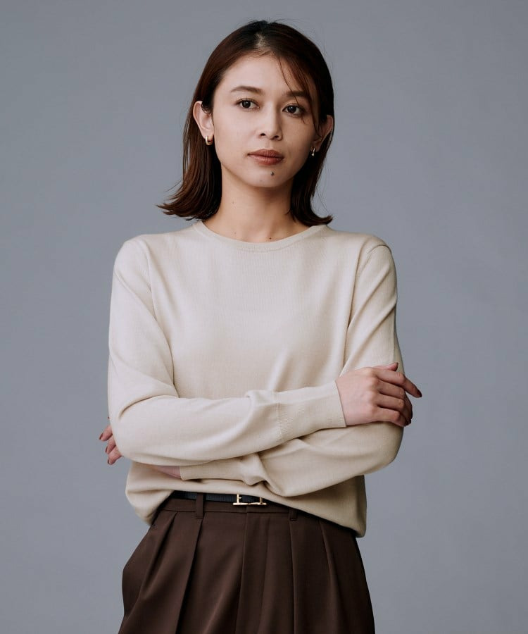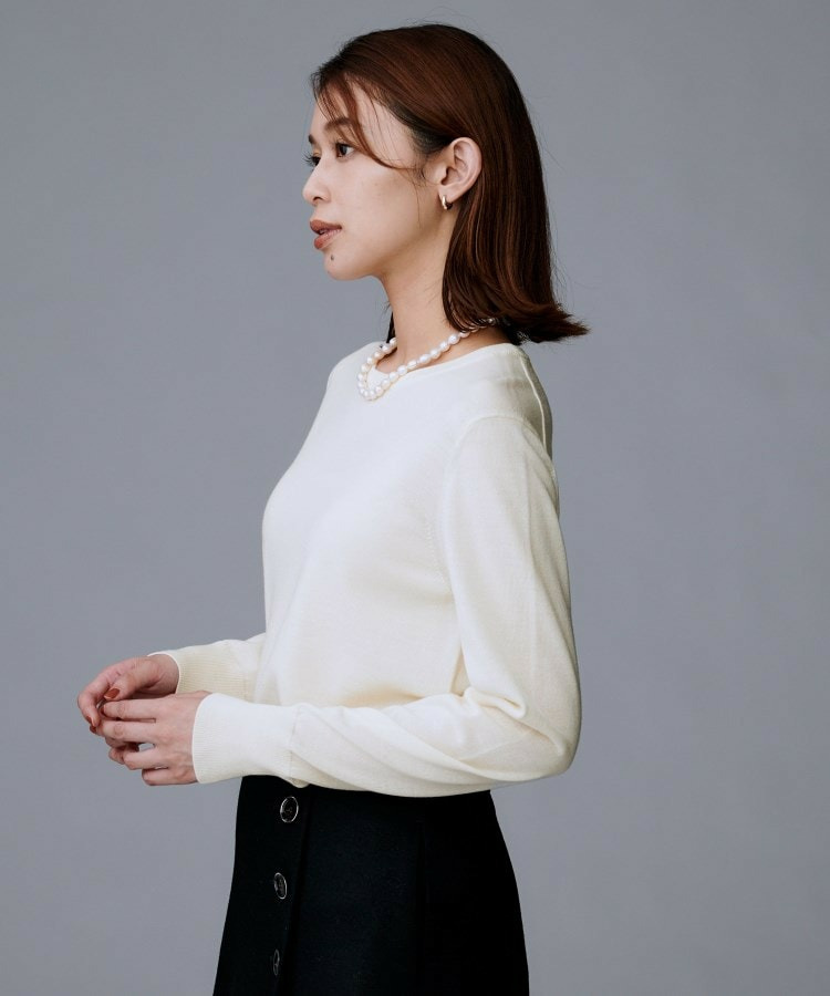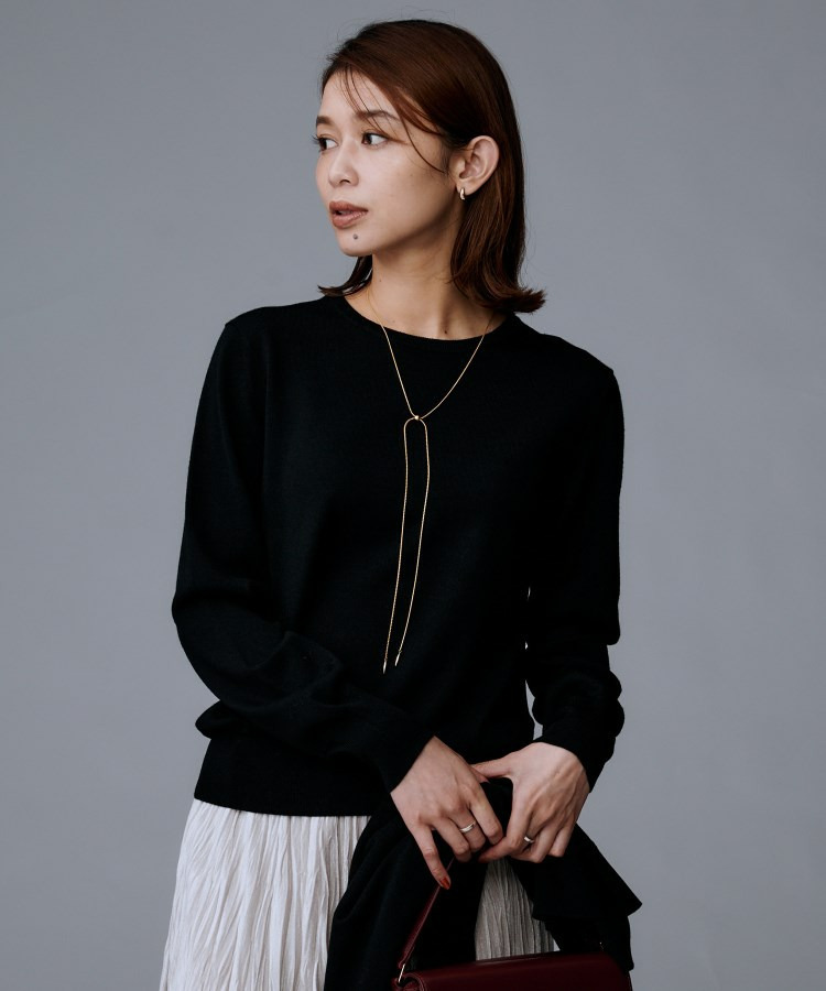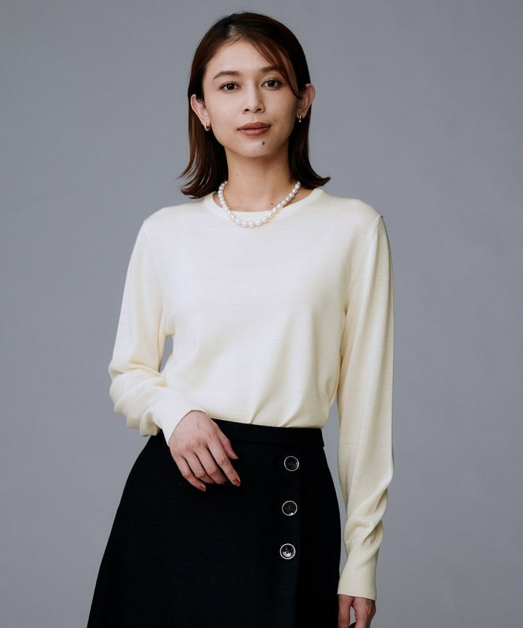 クルーネックでコンパクト過ぎず、程よくゆとりを持たせたサイジングがキレイめな印象のニットです。