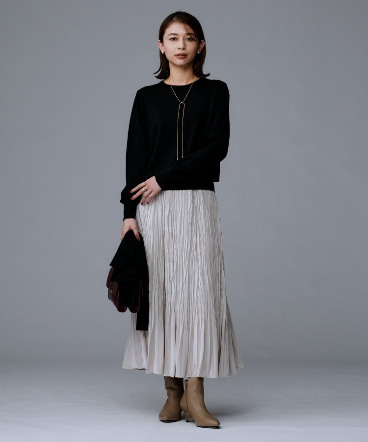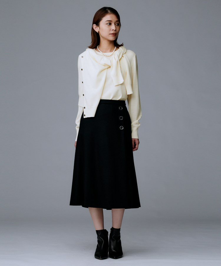 スカートはフレアからナロータイトなど幅広く合わせ易く、ワイドやタックテーパードのパンツ等にも着て頂けます。
