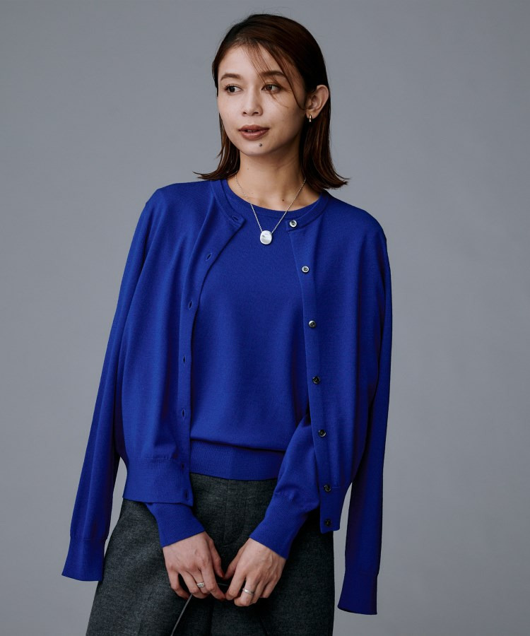 同素材のクルーカーデ153-34554とアンサンブルにもなります。