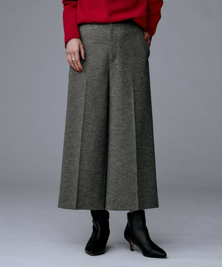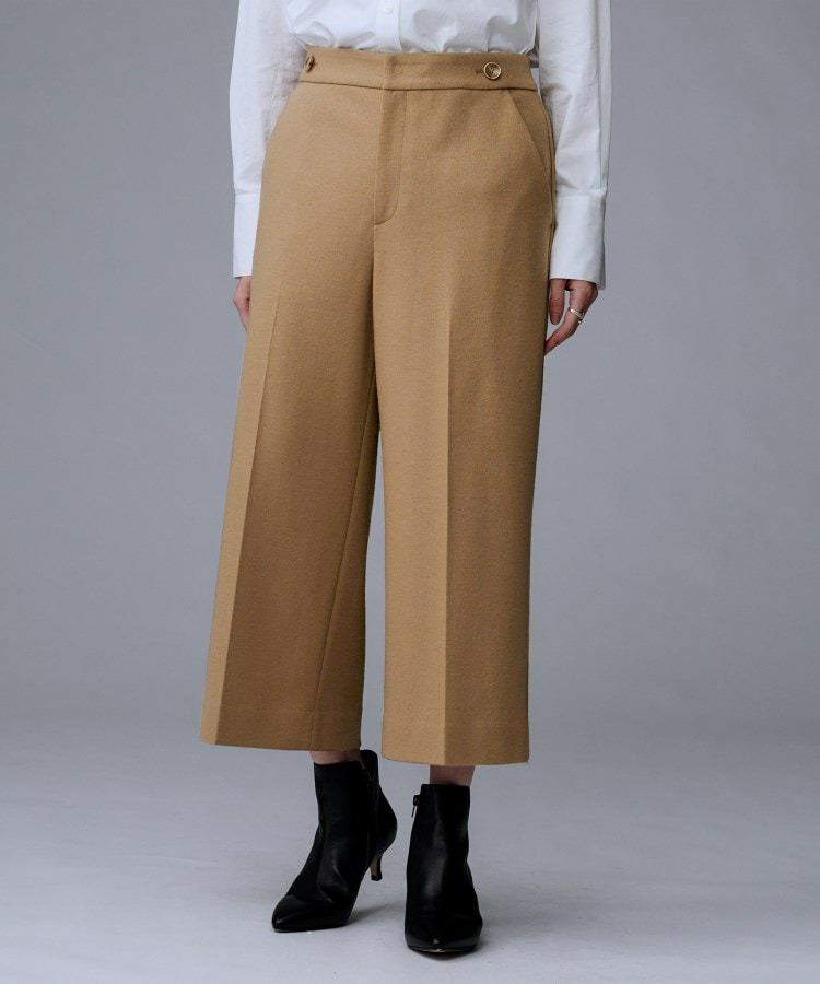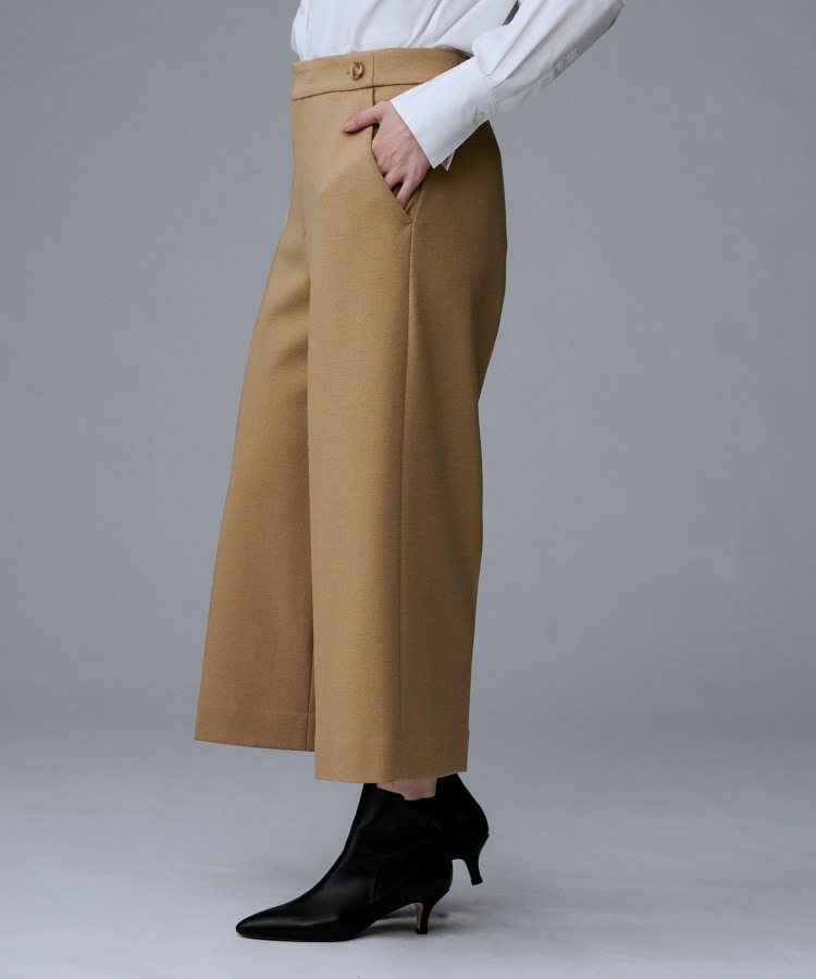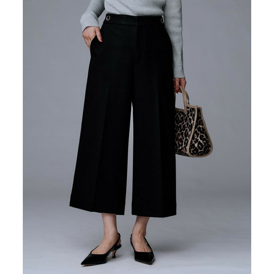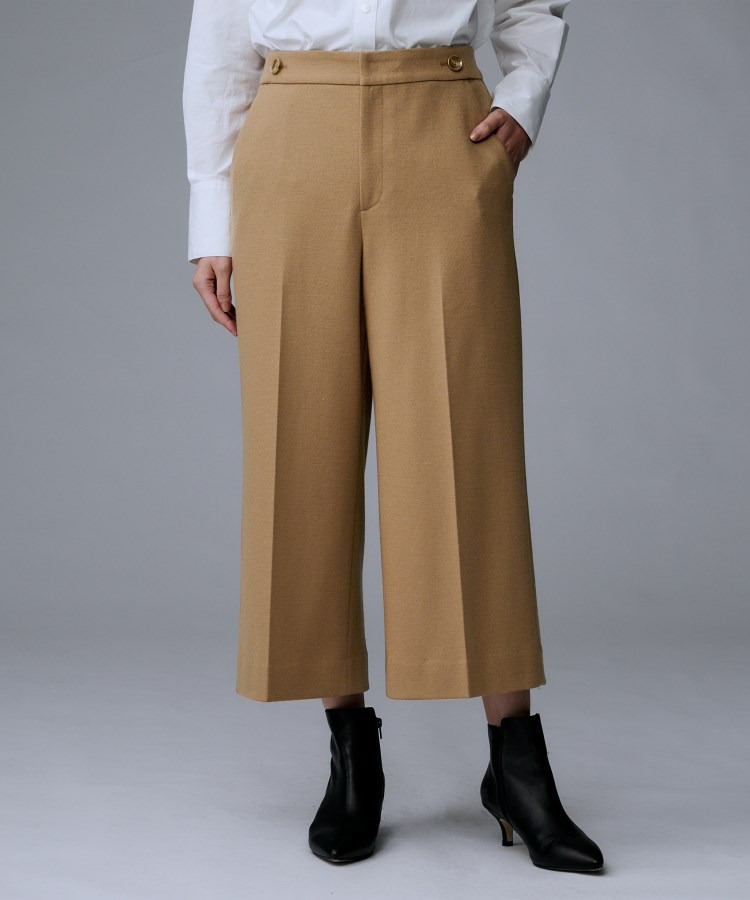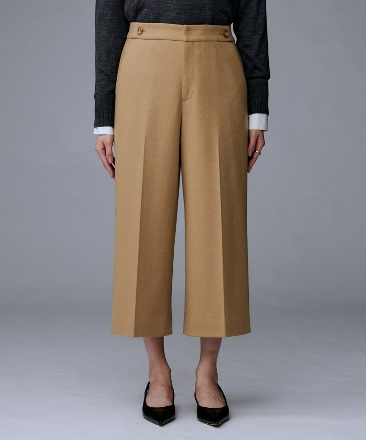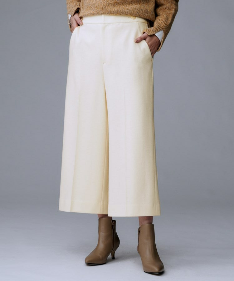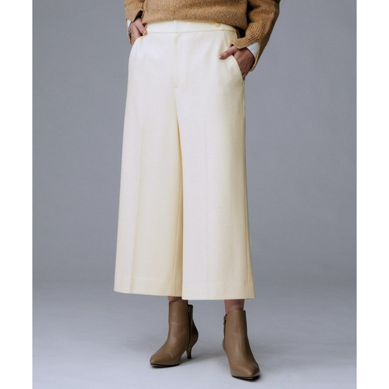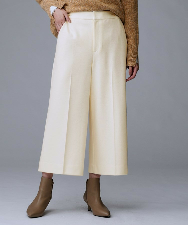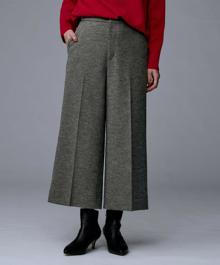 【ウール100%/ウエスト後ろゴム】 クロップドワイドパンツ