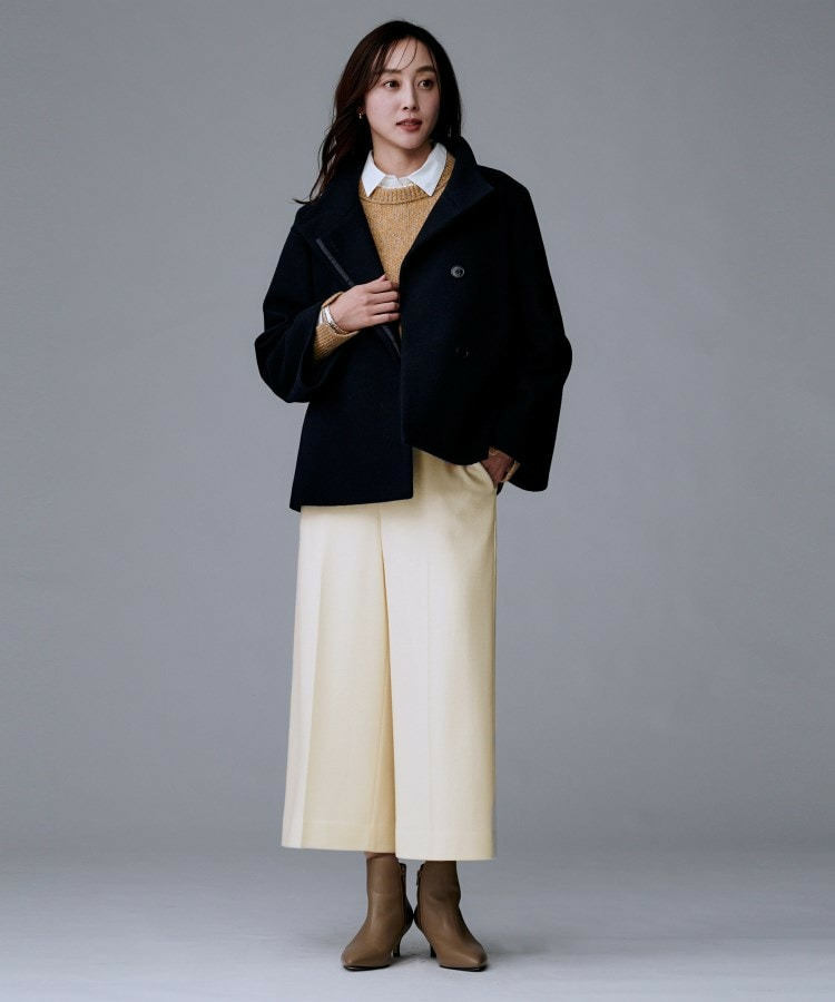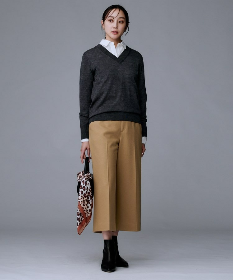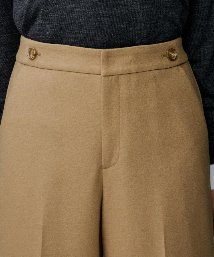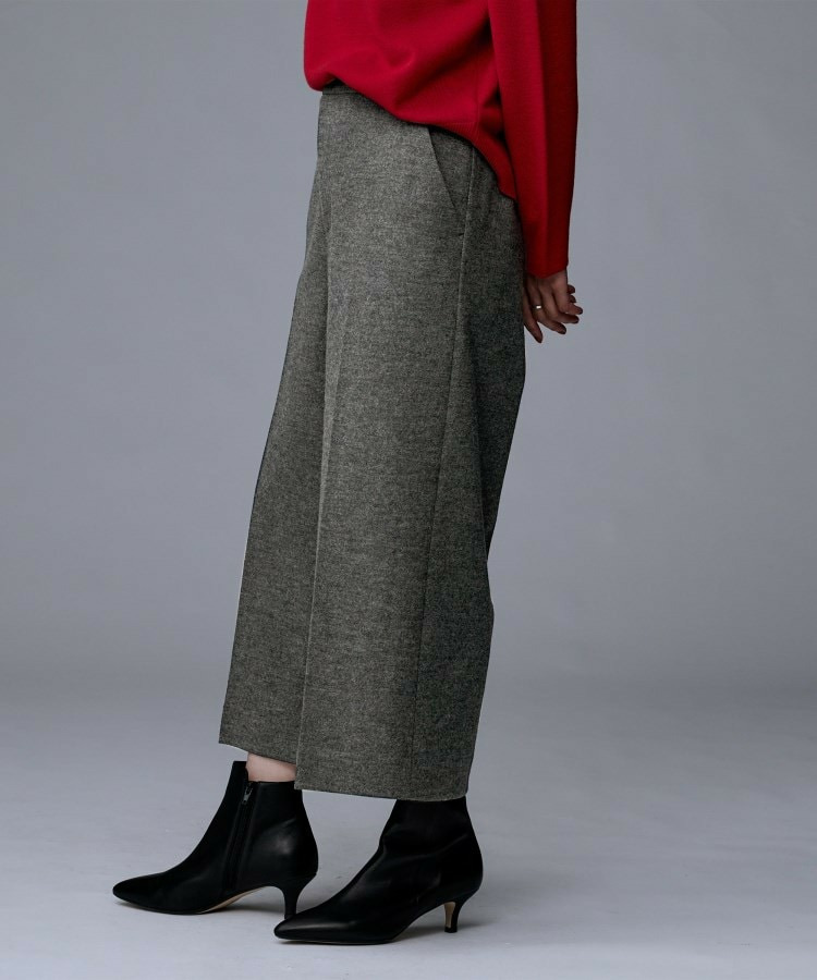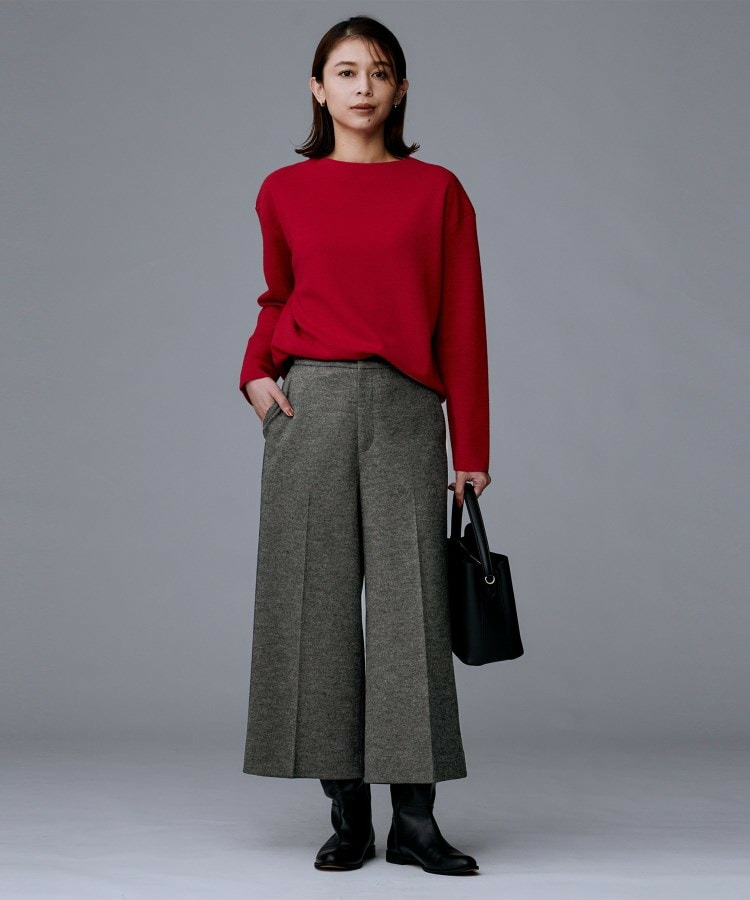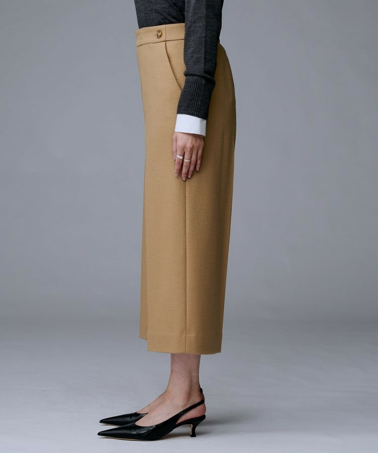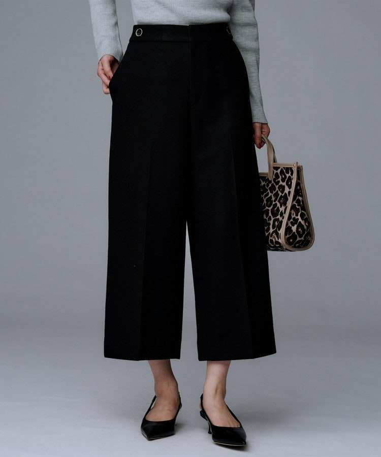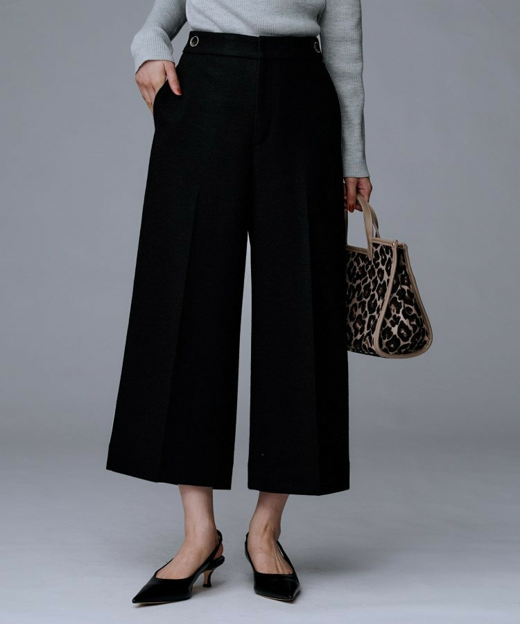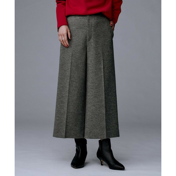 【ウール100%/ウエスト後ろゴム】 クロップドワイドパンツ