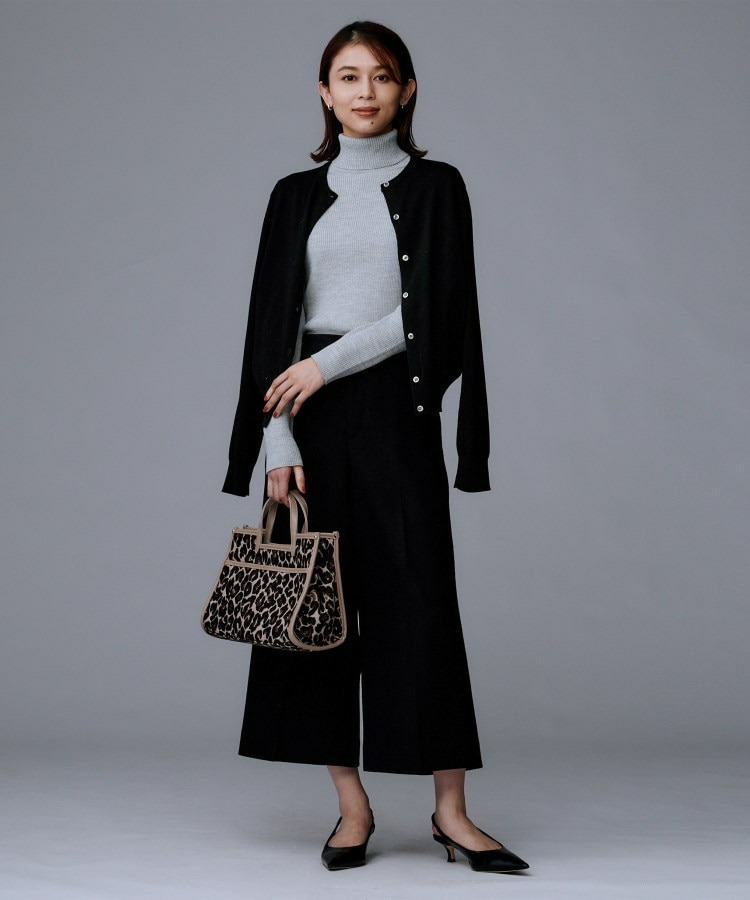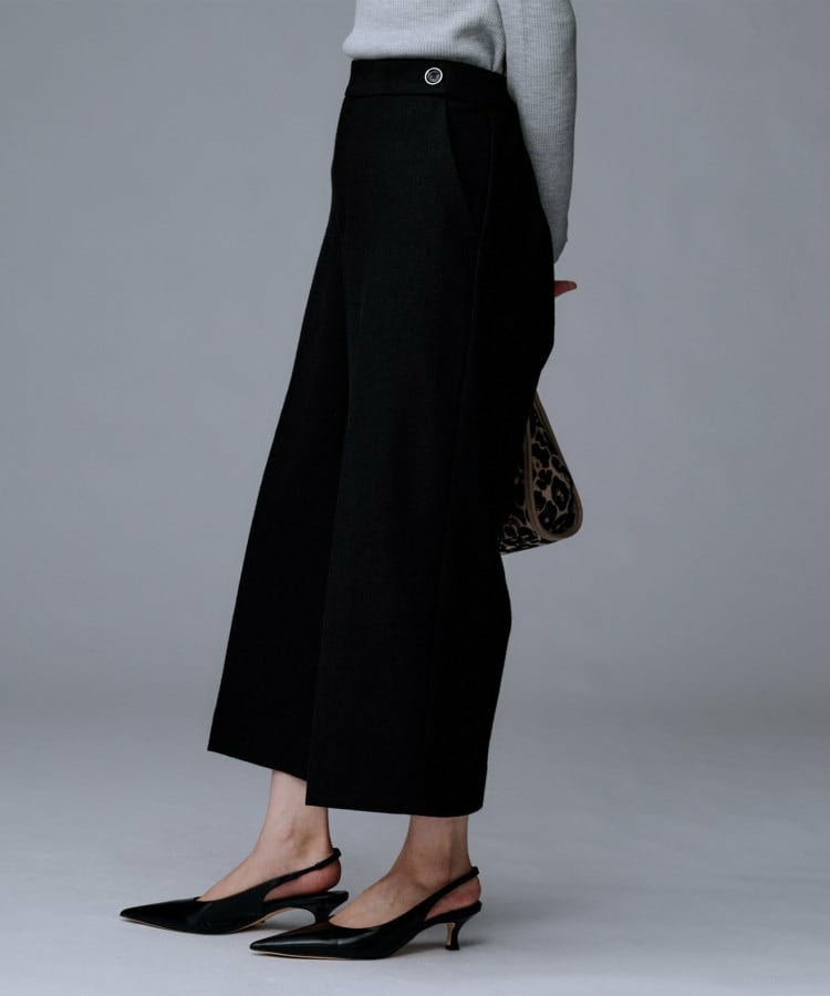 定番のクロップドワイドパンツは、センタープレスが入ったスッキリとしたシルエットになっています。