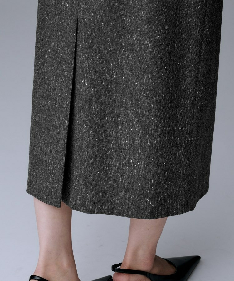 【ミディ丈/シーズンレス/ウエスト後ろゴム】シルクネップツイード ナロースカート