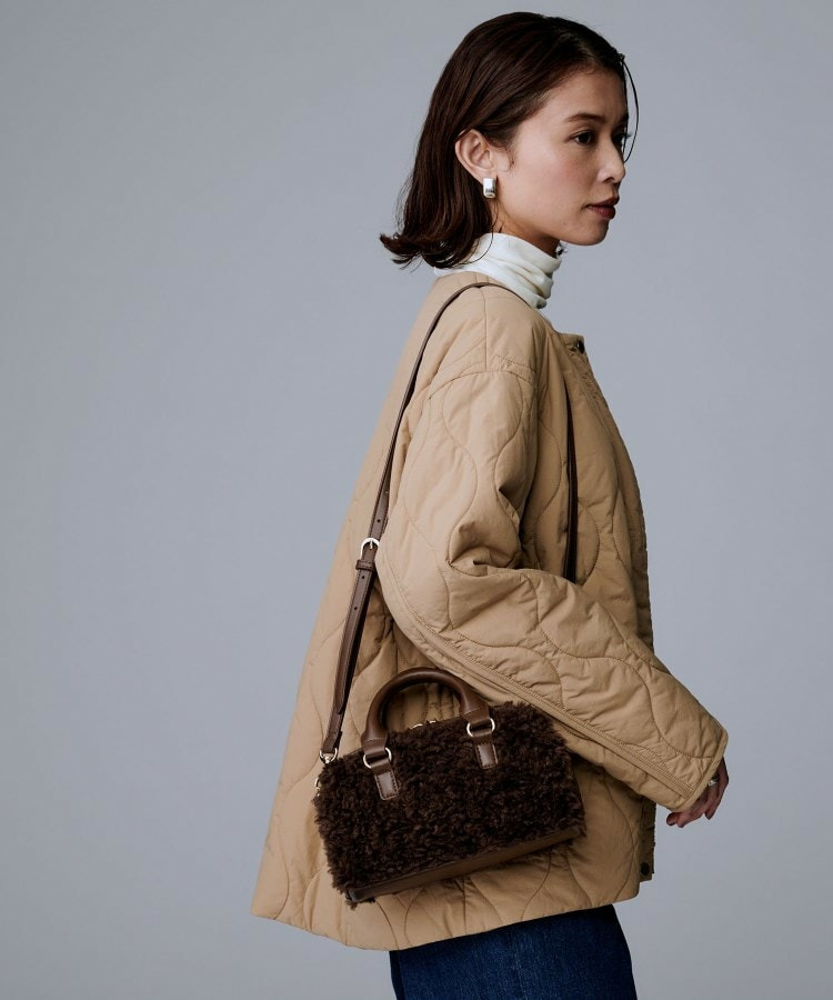 フェイクファーの素材でスタイリングにアクセントをプラスするミニボストンバッグ。