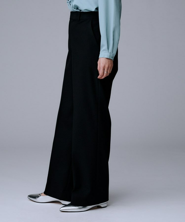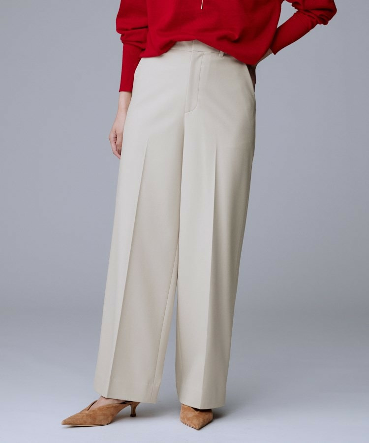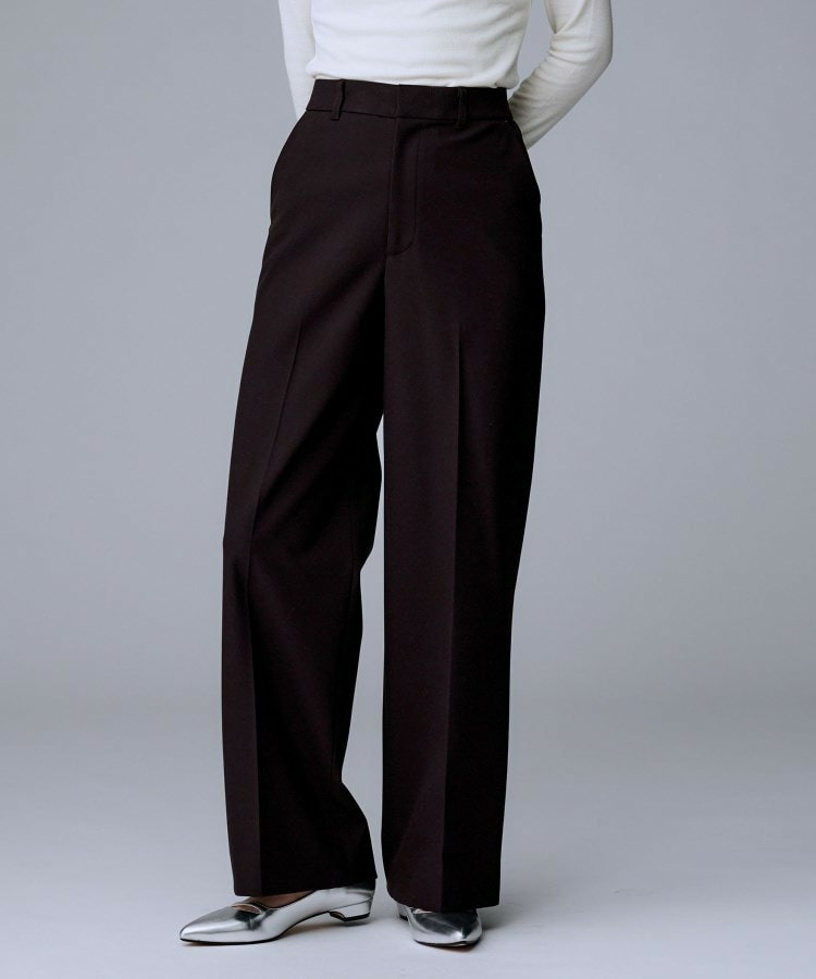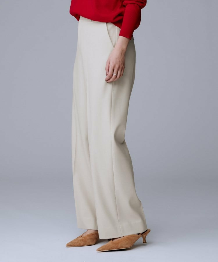 ストレッチ性のある裏起毛素材を活かした洗練されたワイドパンツ。