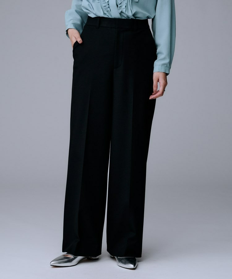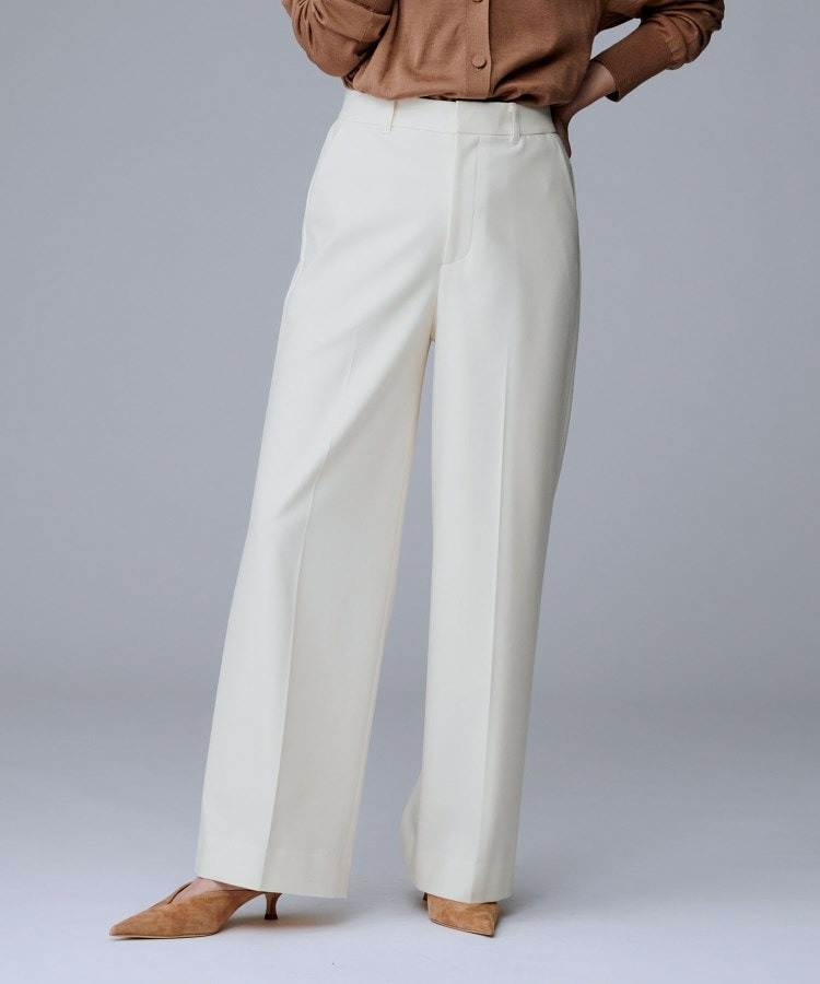 センタープレスの効いた程良いワイド感でトップス選びも迷いません。
