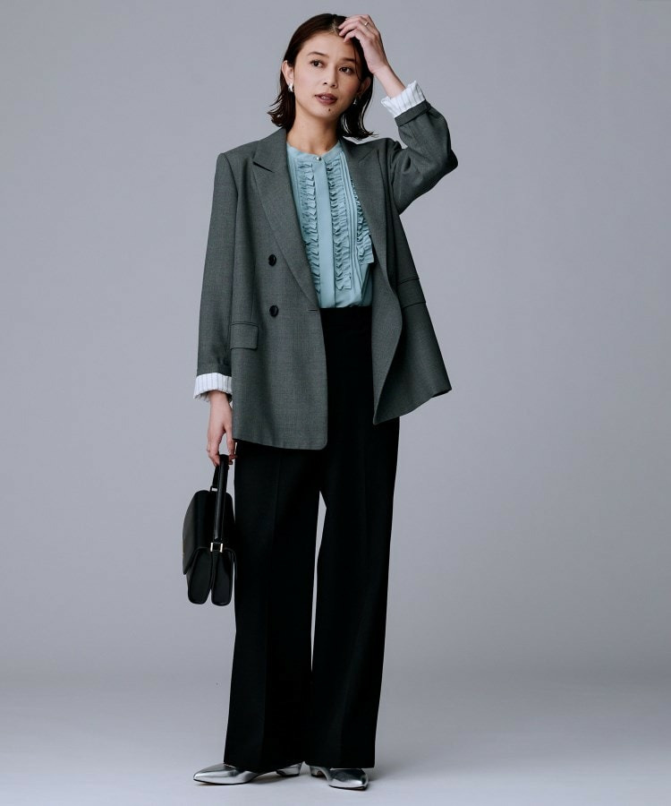 | 素材 | オフホワイト(003) 表地:ポリエステル48% レーヨン48% ポリウレタン4% 裏地:ポリエステル100% ブラック(019) ブラウン(043) グレージュ(050) ポリエステル48% レーヨン48% ポリウレタン4% |