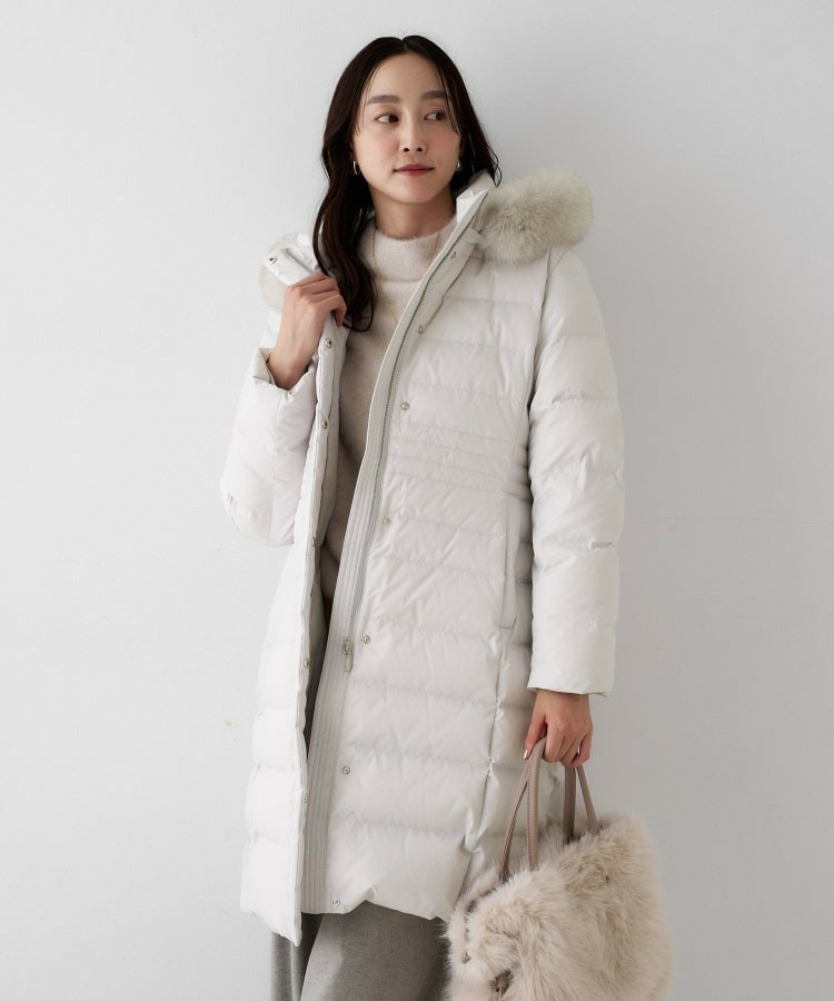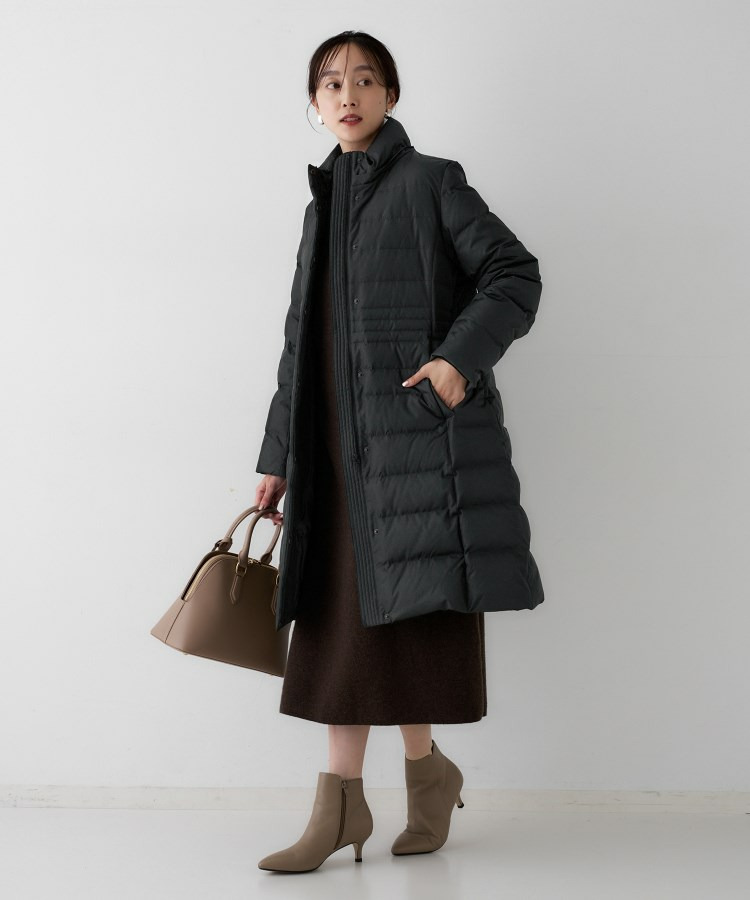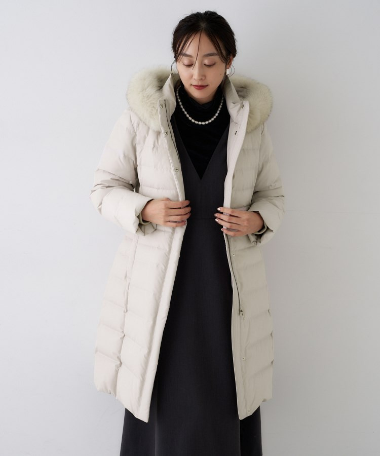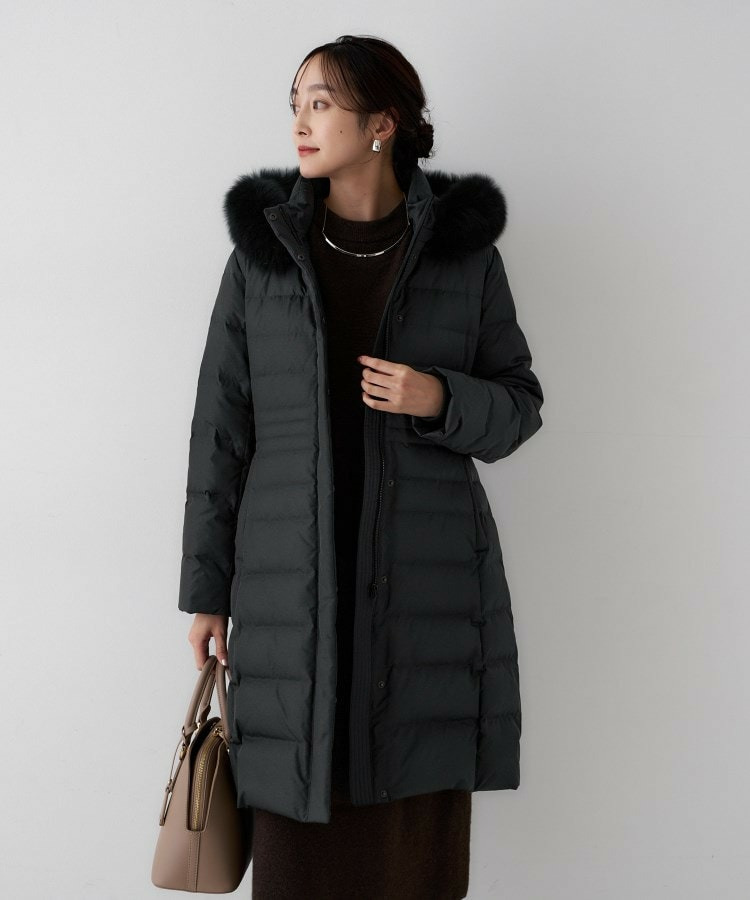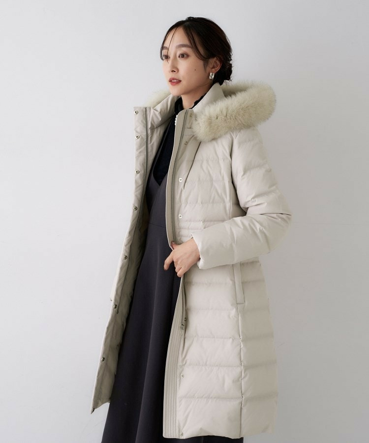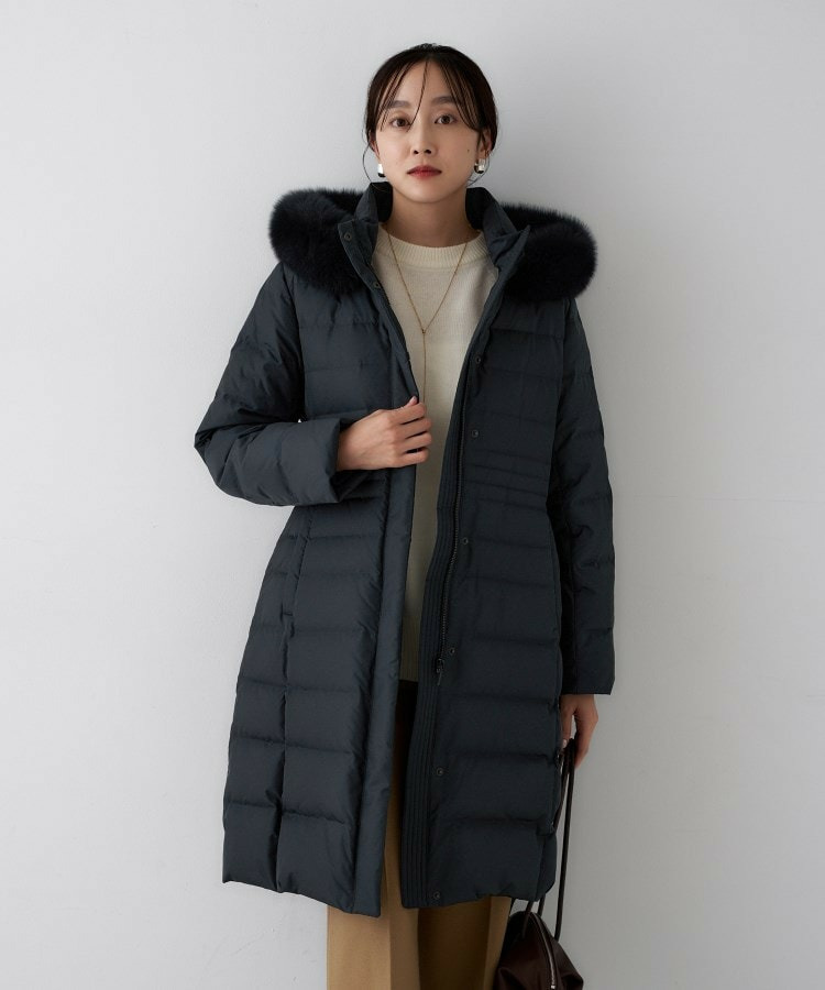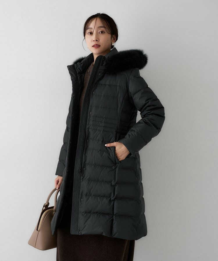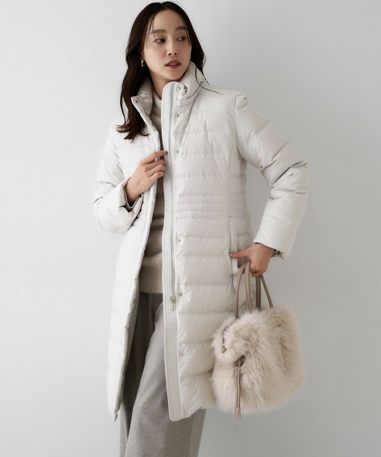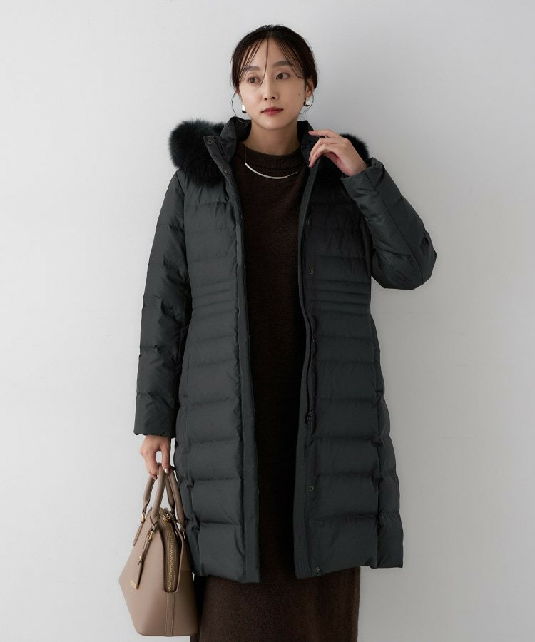 定番のロング丈ダウンコートは、ポーランドダウンを使用した贅沢なコート。