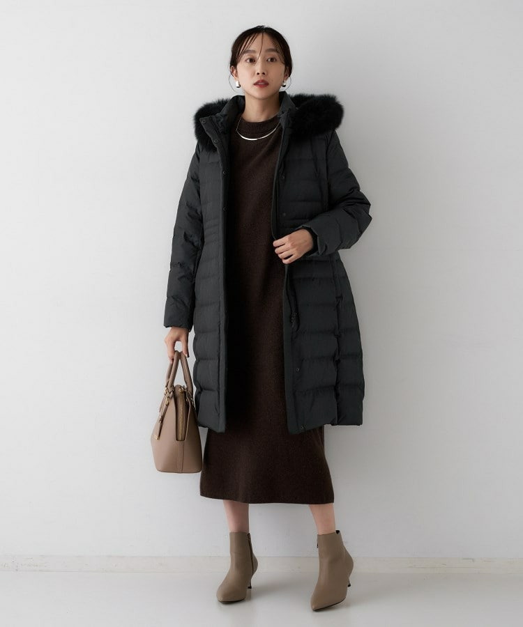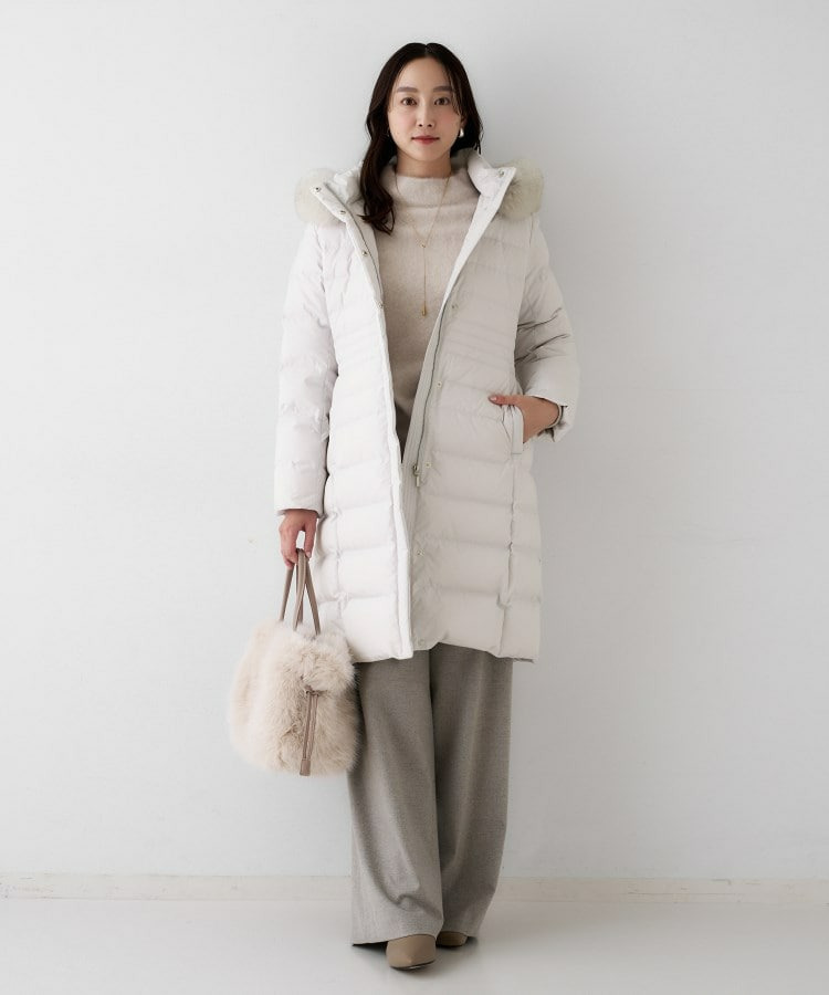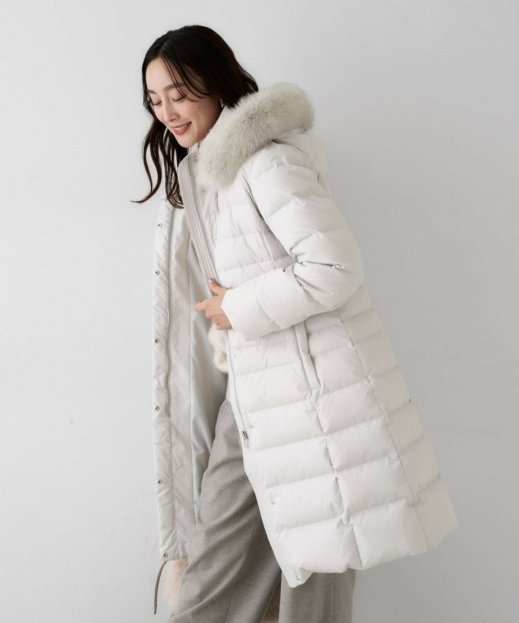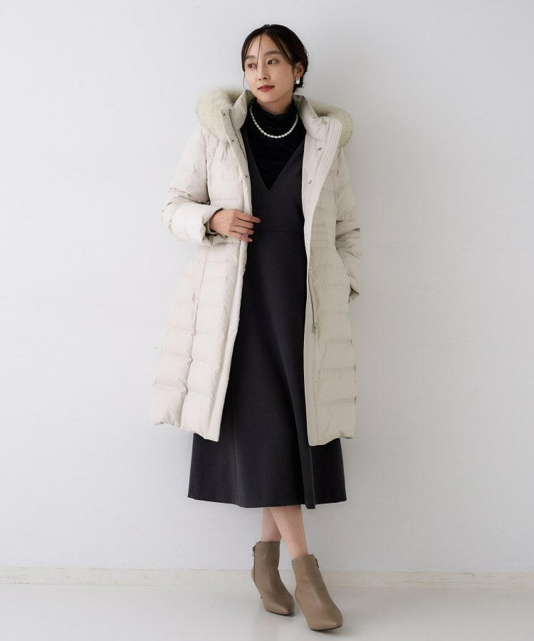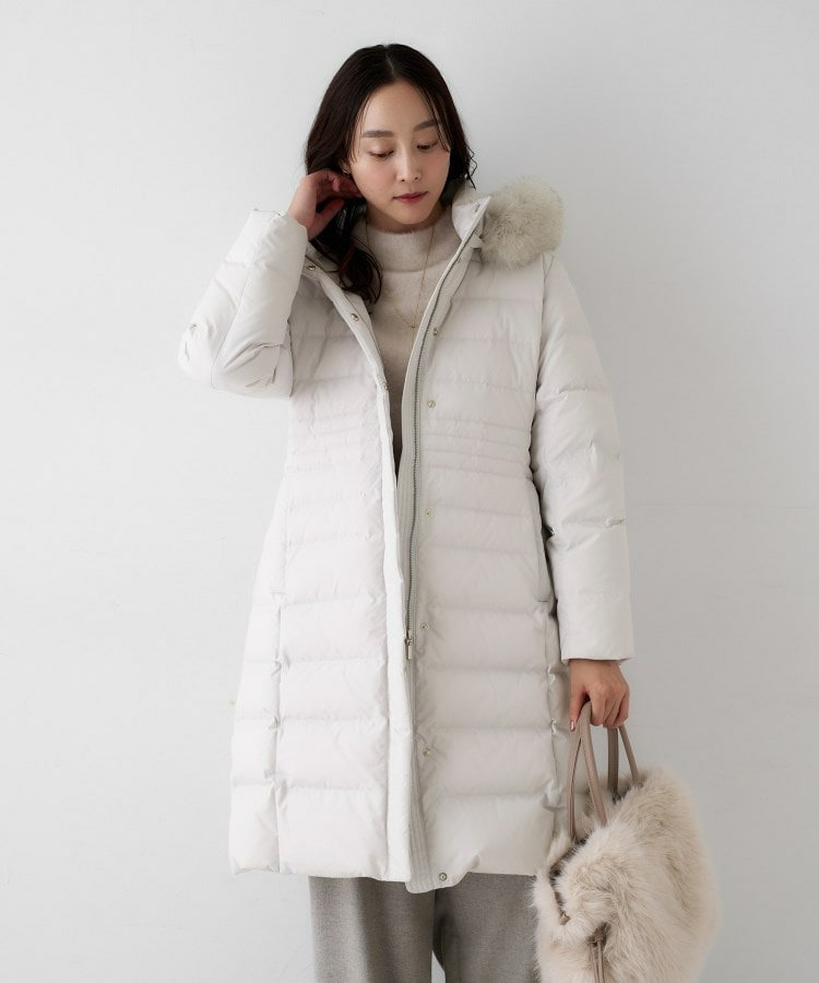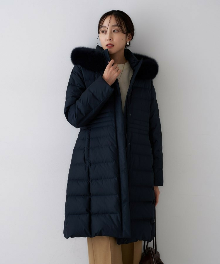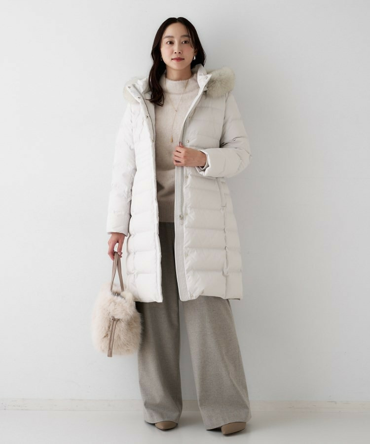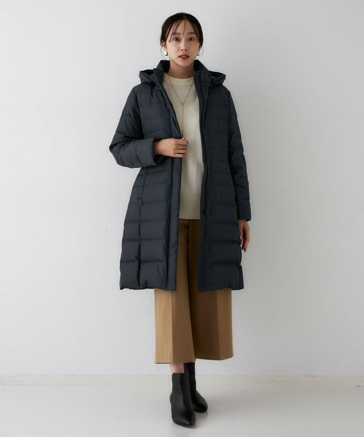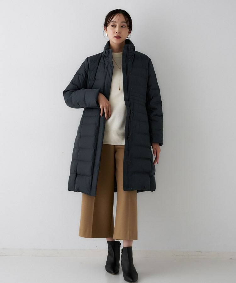 定番のロング丈ダウンコートは、ポーランドダウンを使用した贅沢なコート。