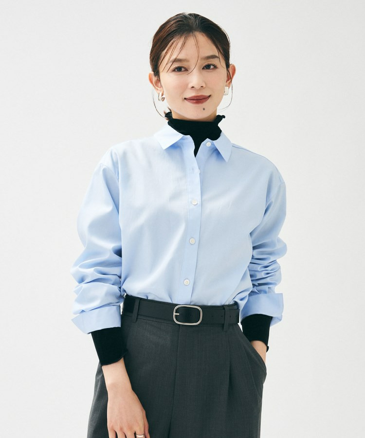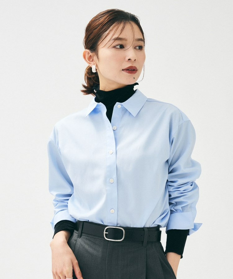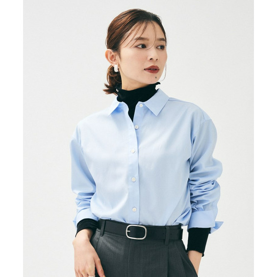 【重ね着レイヤード/スーツブラウス】ファインブロードベーシックシャツ