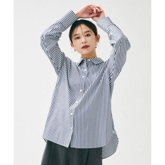 ベーシックシャツなのでどんな着こなしにも合わせやすいアイテムです。