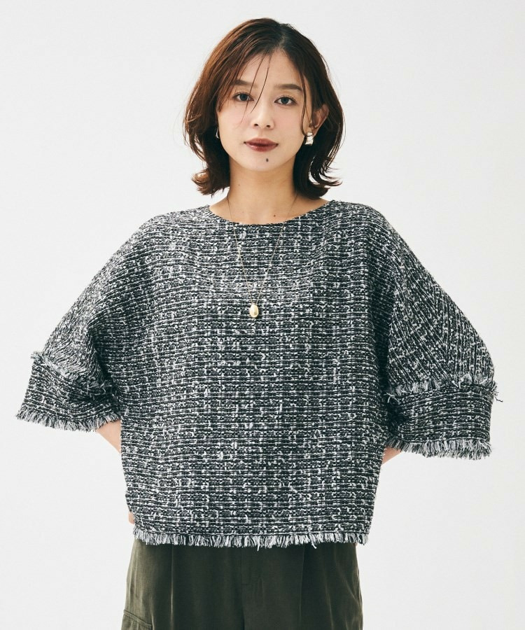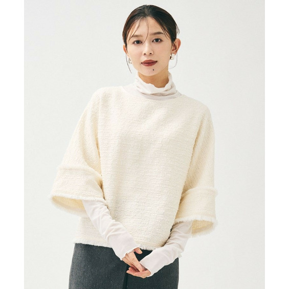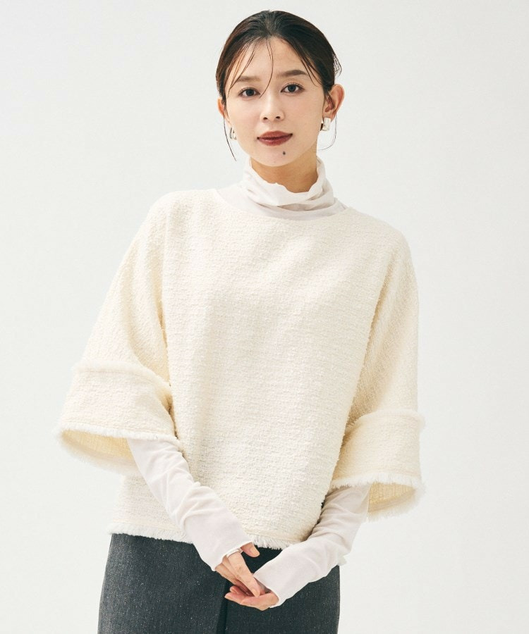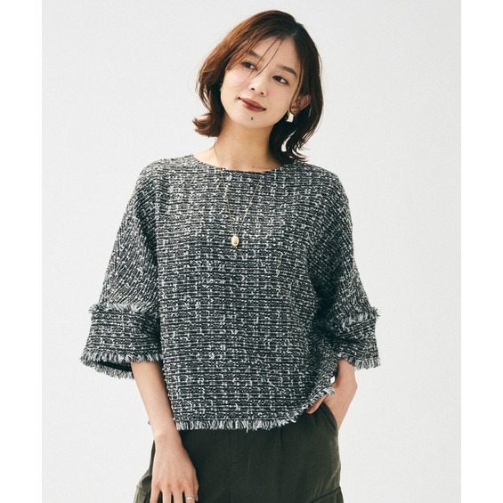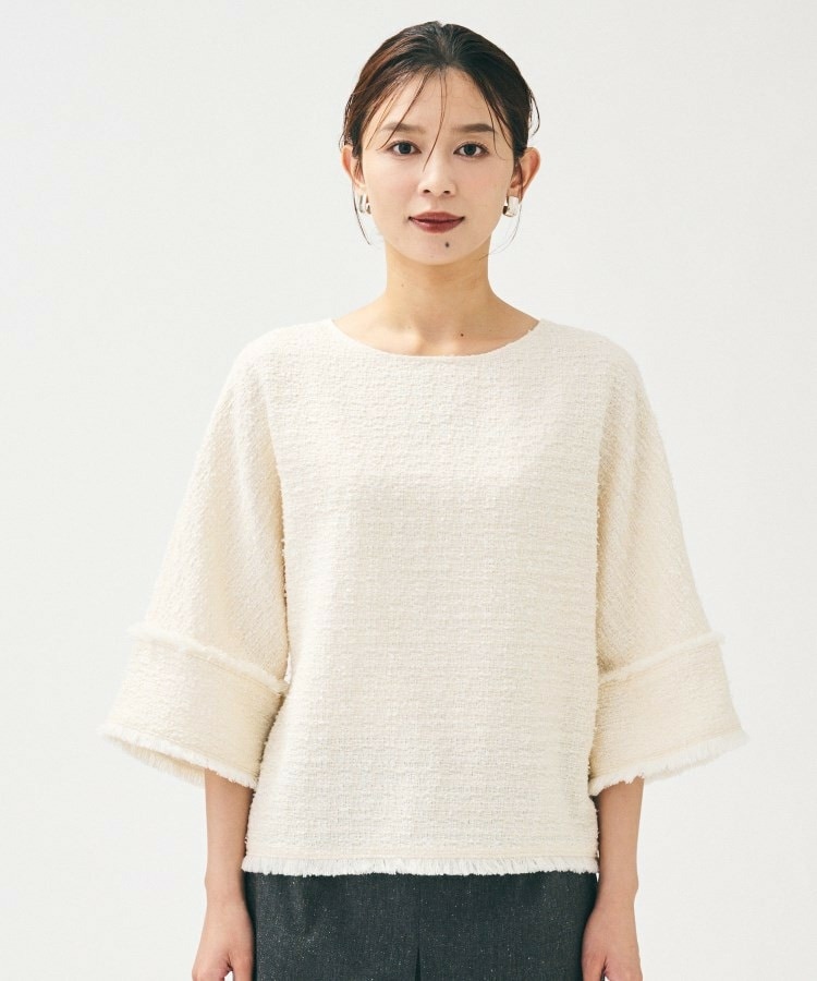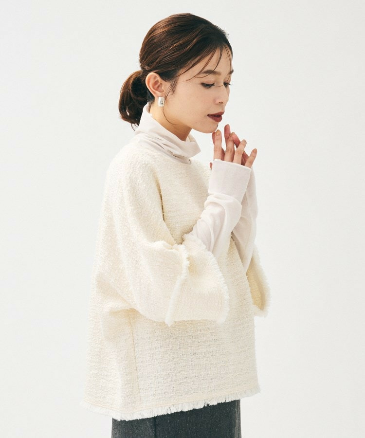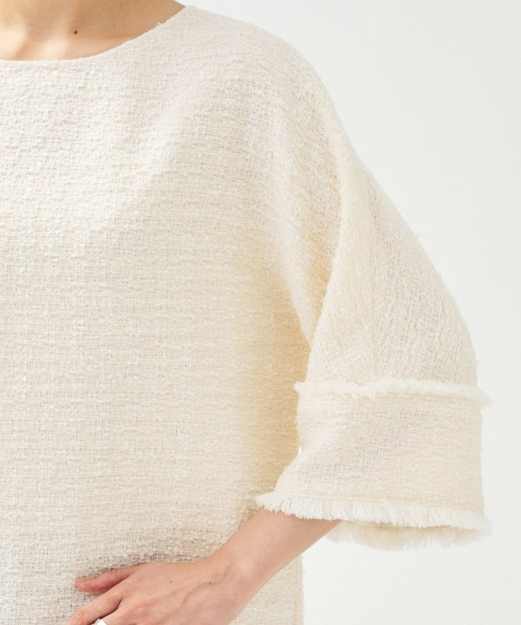 袖口と裾に施されたフリンジが、女性らしさを引き立てるデザイン。