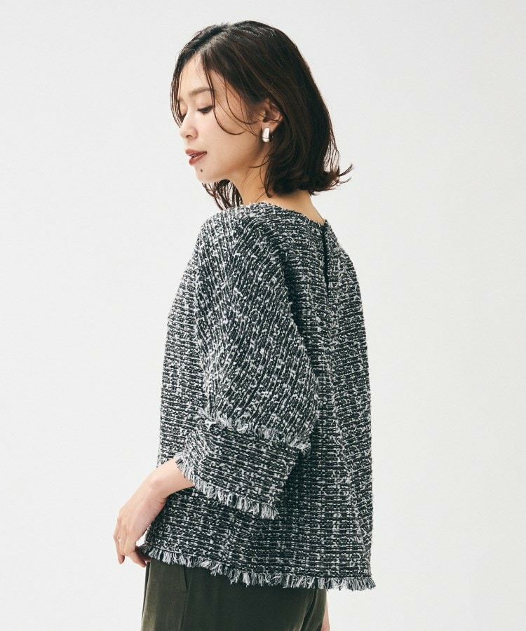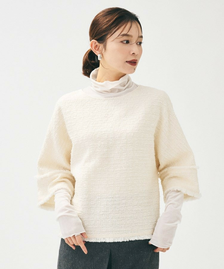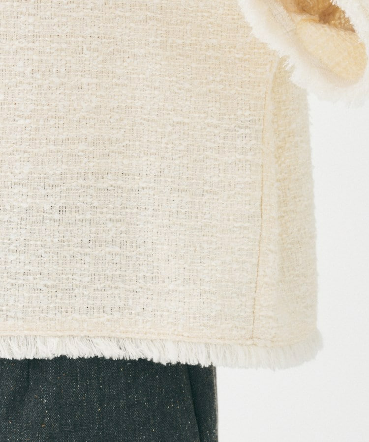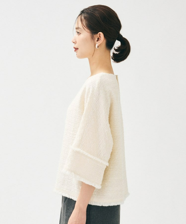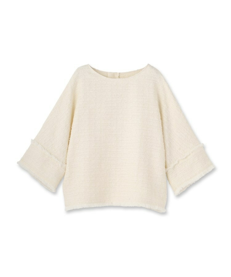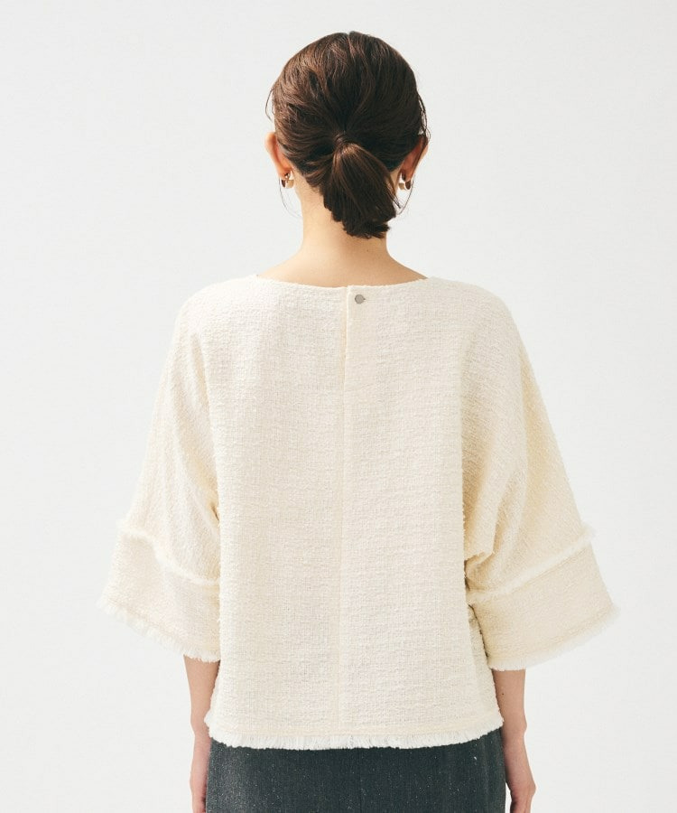 袖口と裾に施されたフリンジが、女性らしさを引き立てるデザイン。