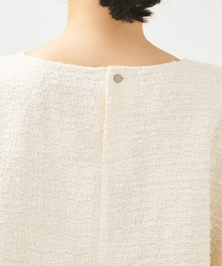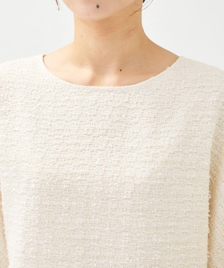 ワイドパンツなど分量感のあるボトムとのコーデがおすすめです。