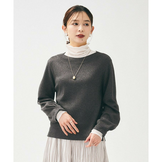 きれいめで薄手の素材にシンプルなデザイン、繊細なラメの光沢感が女性らしい印象のプルオーバー。