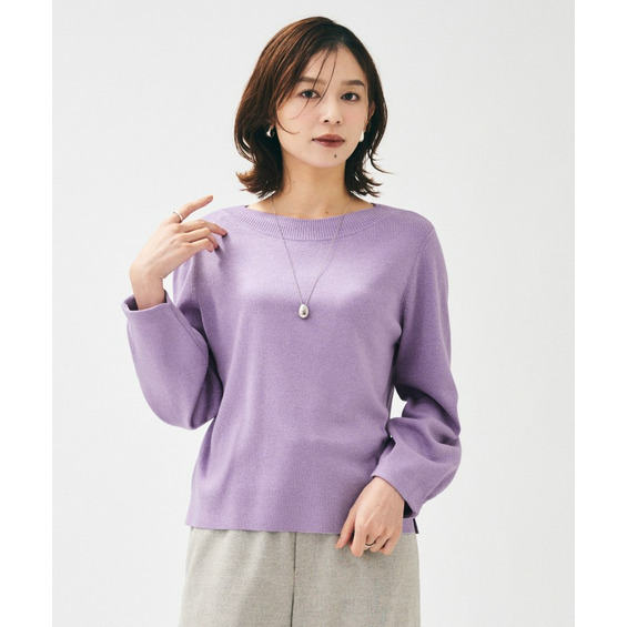 【きれいめ/程よくすっきり】ラメ入りワイドボートネックニット