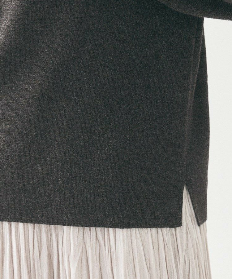 きれいめで薄手の素材にシンプルなデザイン、繊細なラメの光沢感が女性らしい印象のプルオーバー。