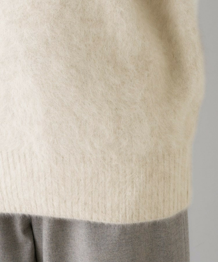 ヘアリーなフォックス高混率に、さらにカシミヤの繊維をブレンドし、しなやかでソフトな手触りや端番手の紡毛糸ならではの暖かみや軽さが特徴の素材。