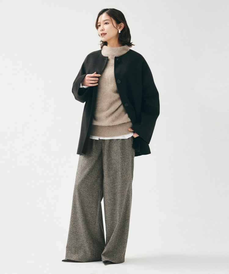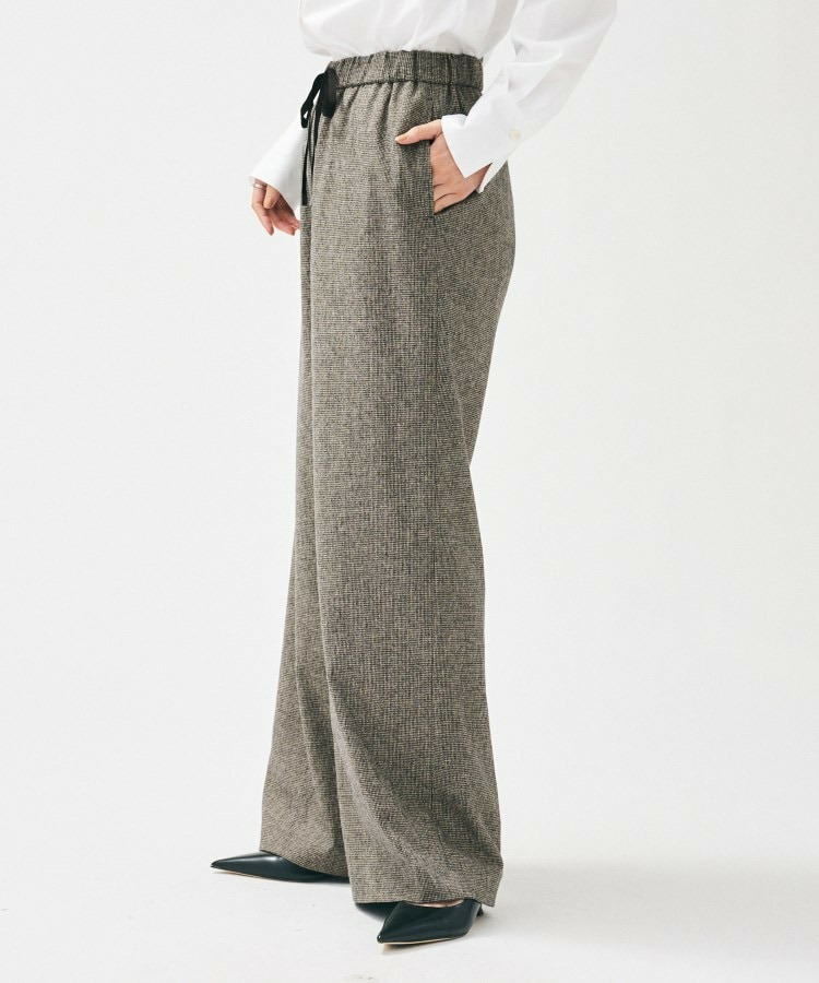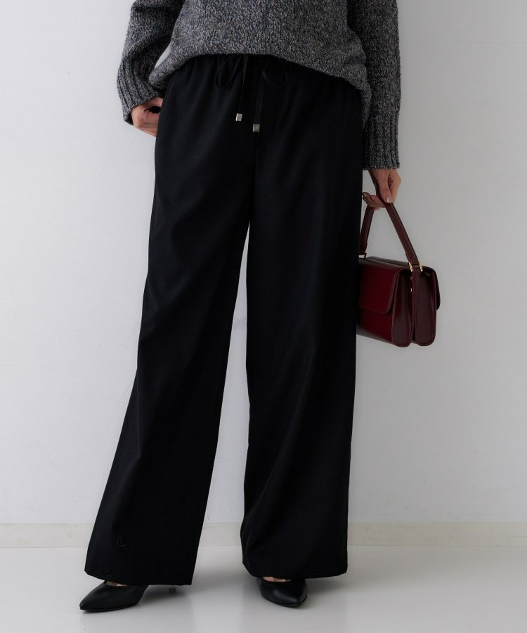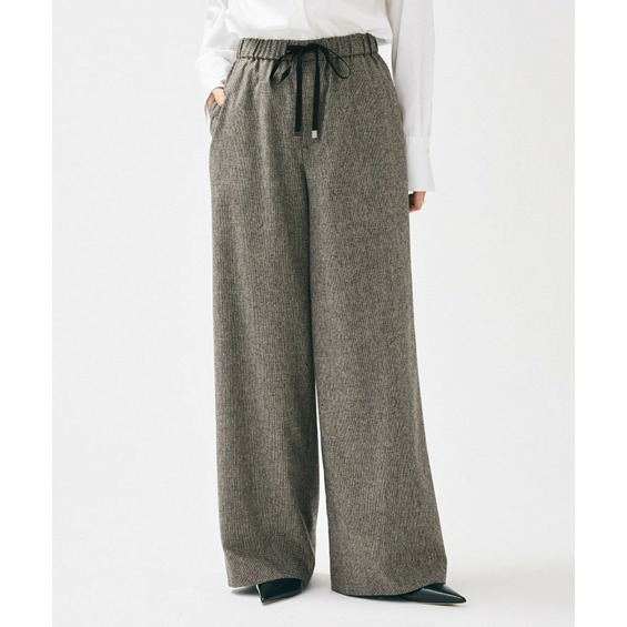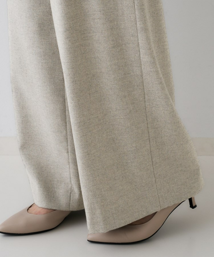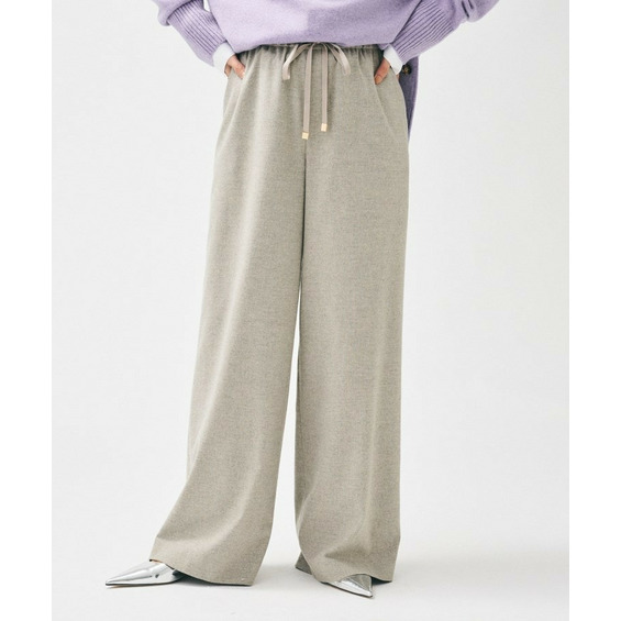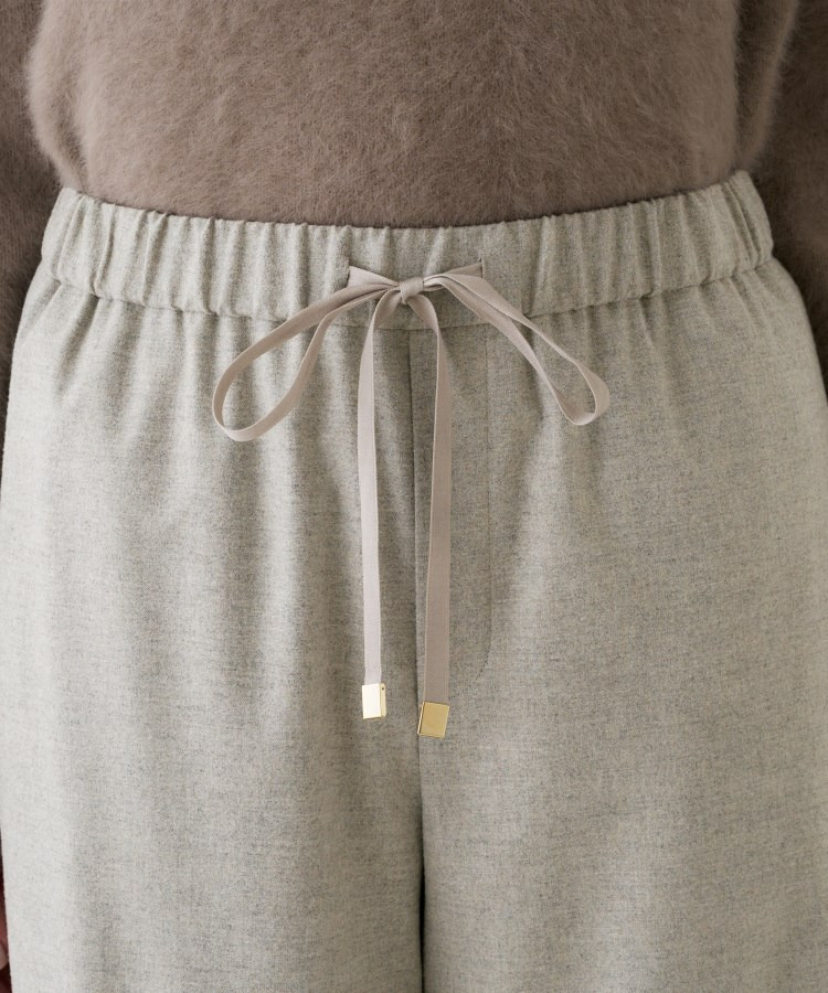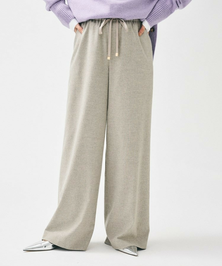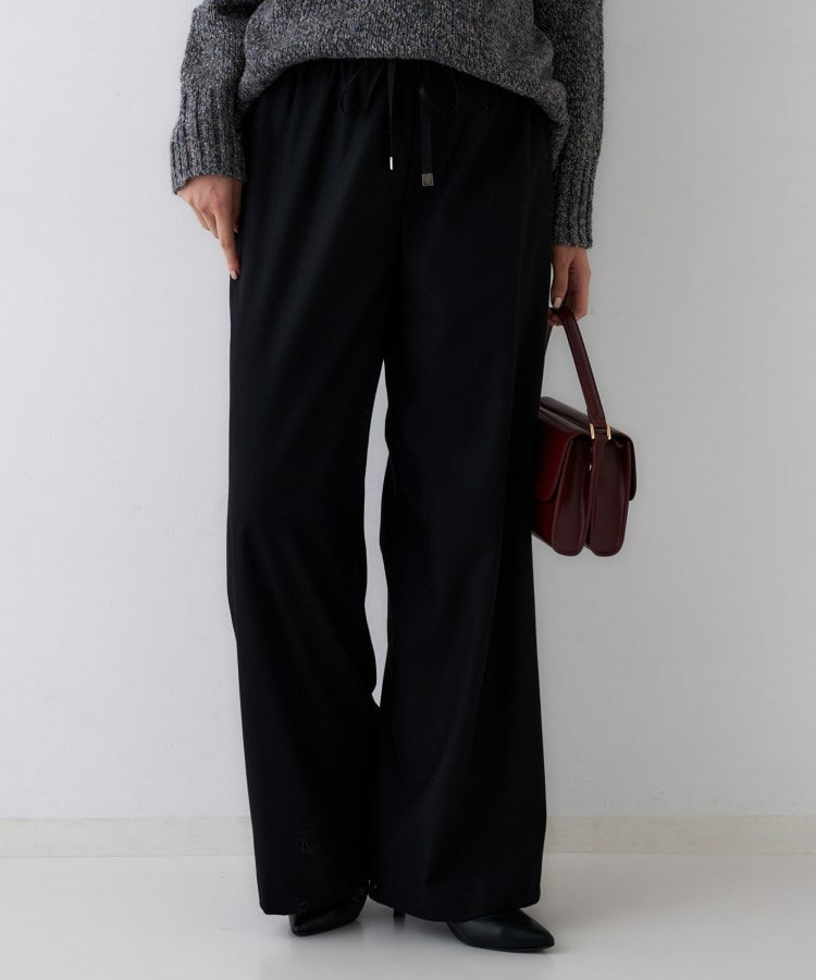 ウールサキソニーのワイドパンツは、柔らかく滑らかな手触で洗練された印象を与えます。