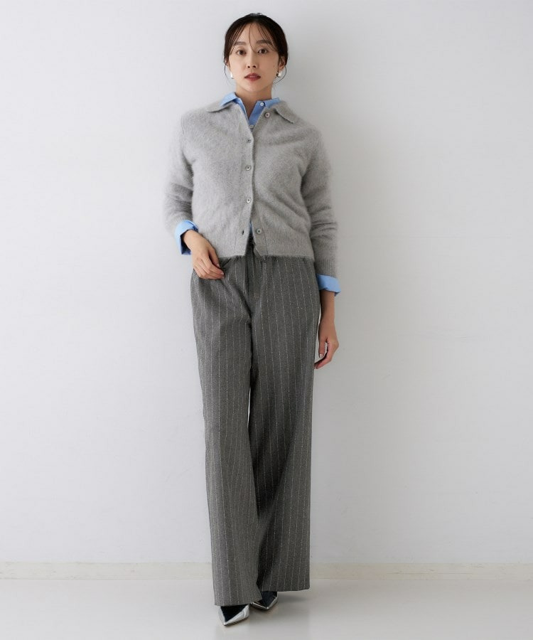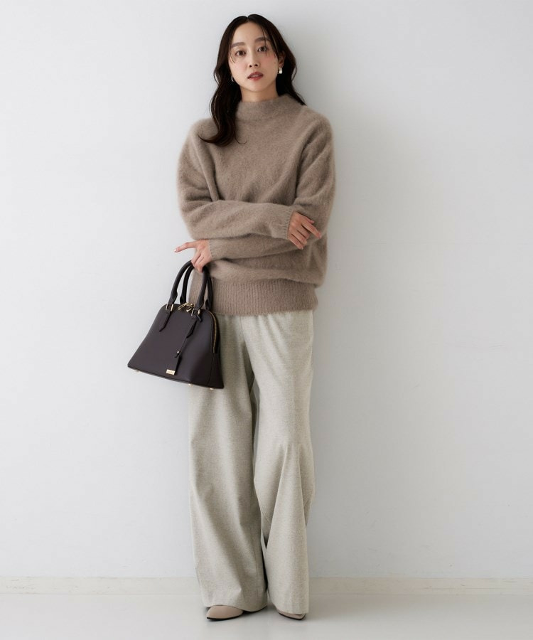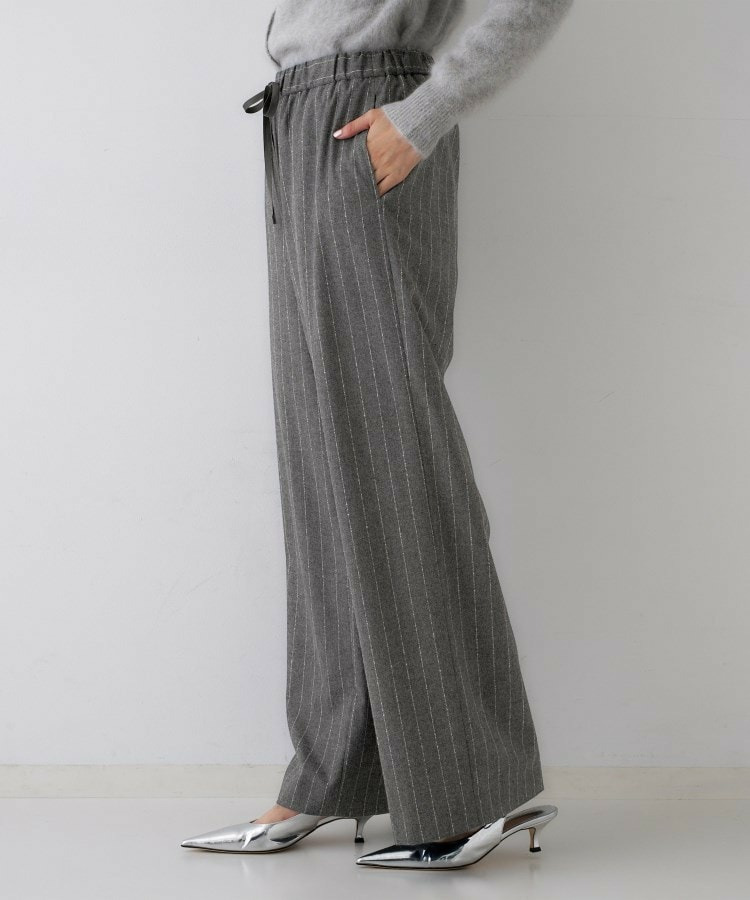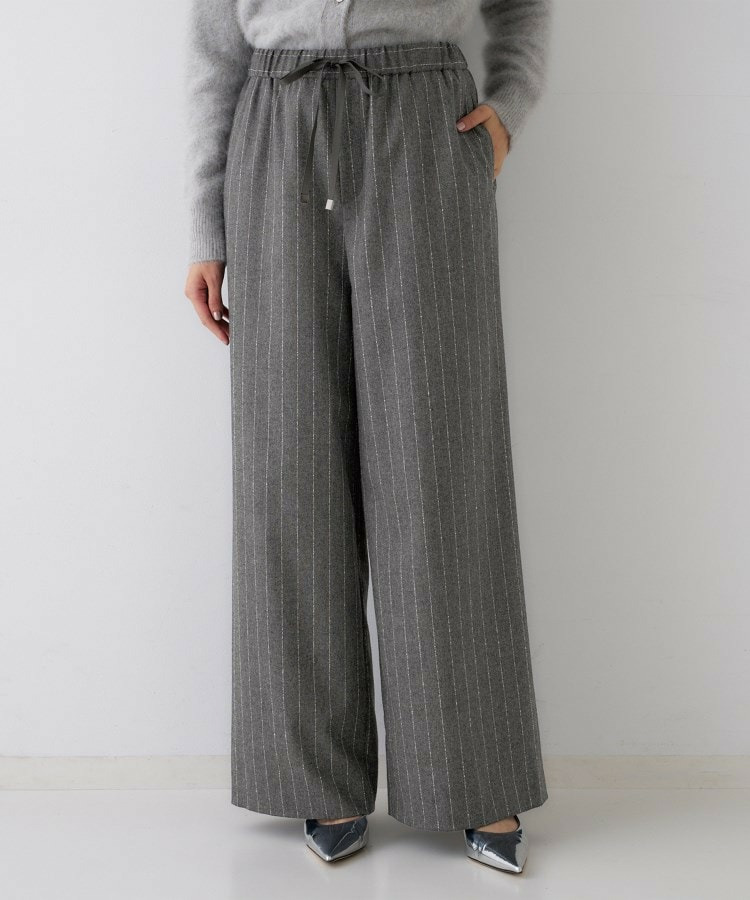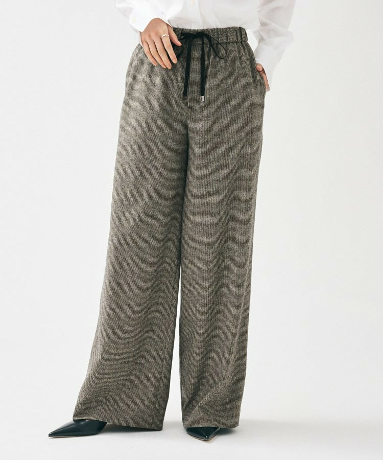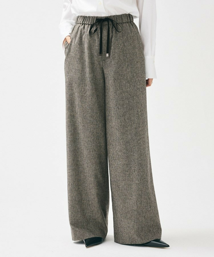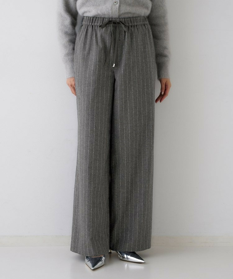 ウールサキソニーのワイドパンツは、柔らかく滑らかな手触で洗練された印象を与えます。