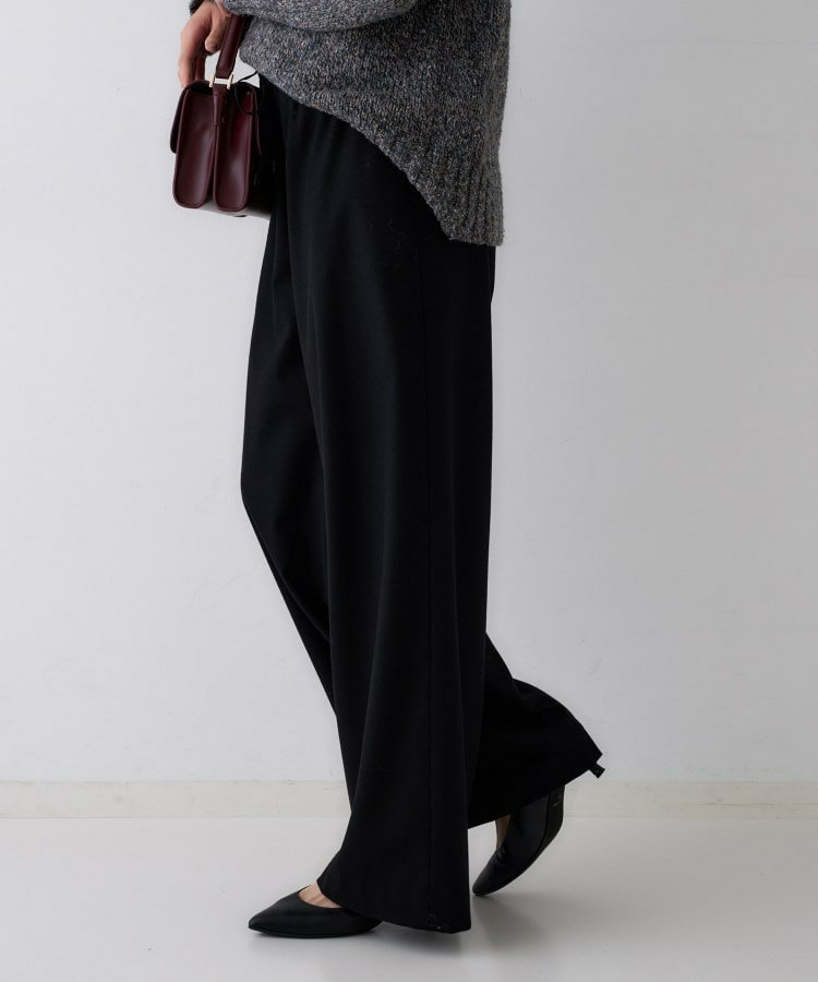 【きれいめリラクシー/ウエストゴム】ウールサキソニー ワイドパンツ
