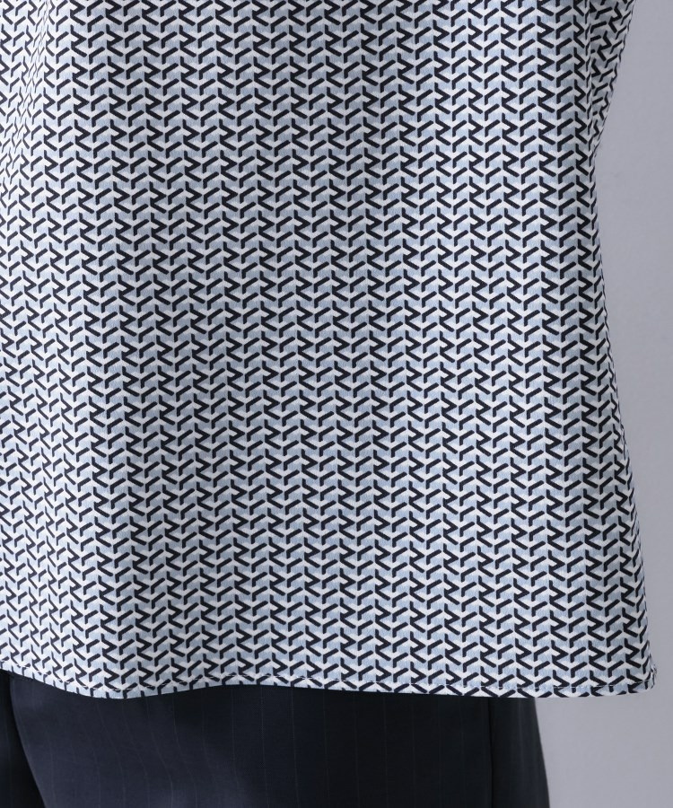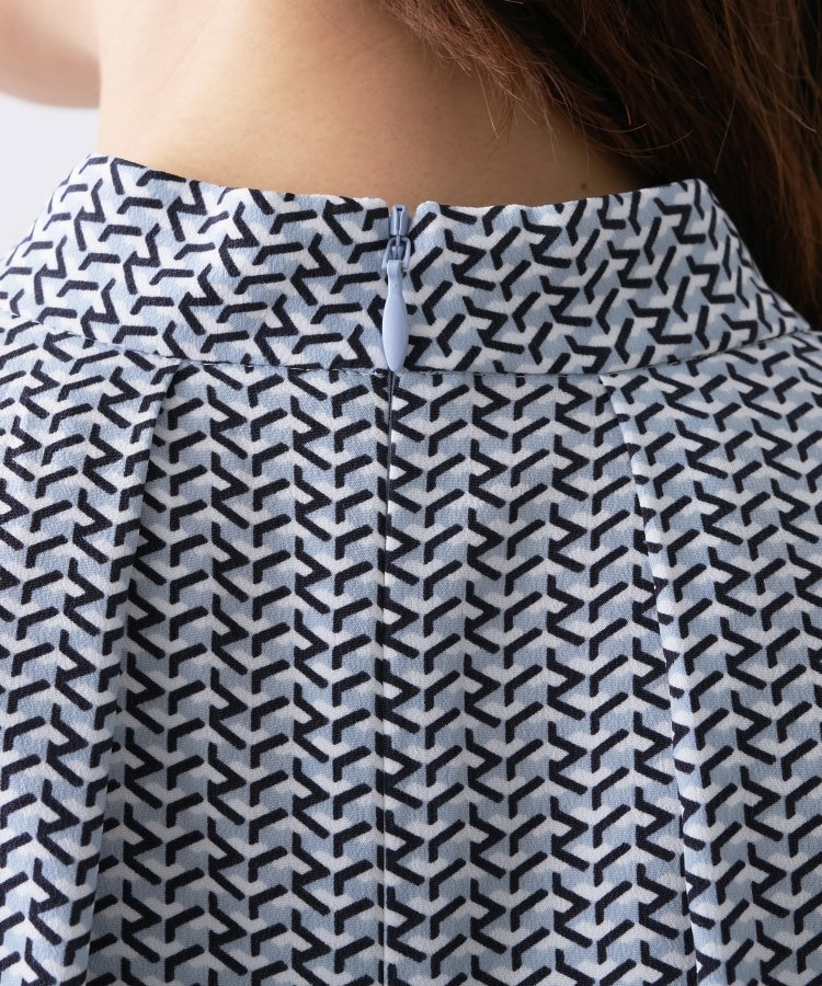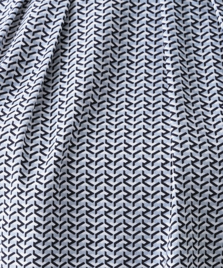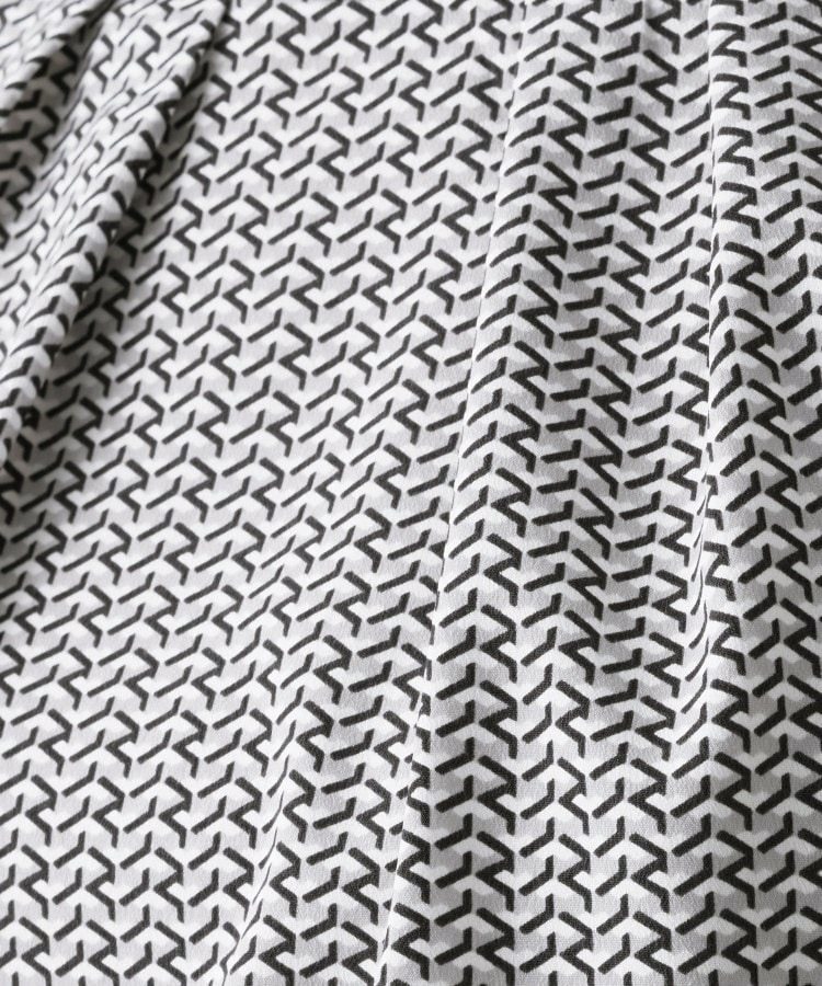 ポリエステル100%のデシンにオリジナルのジオメトリック柄をプリントしました。