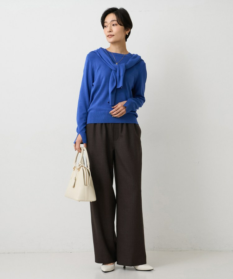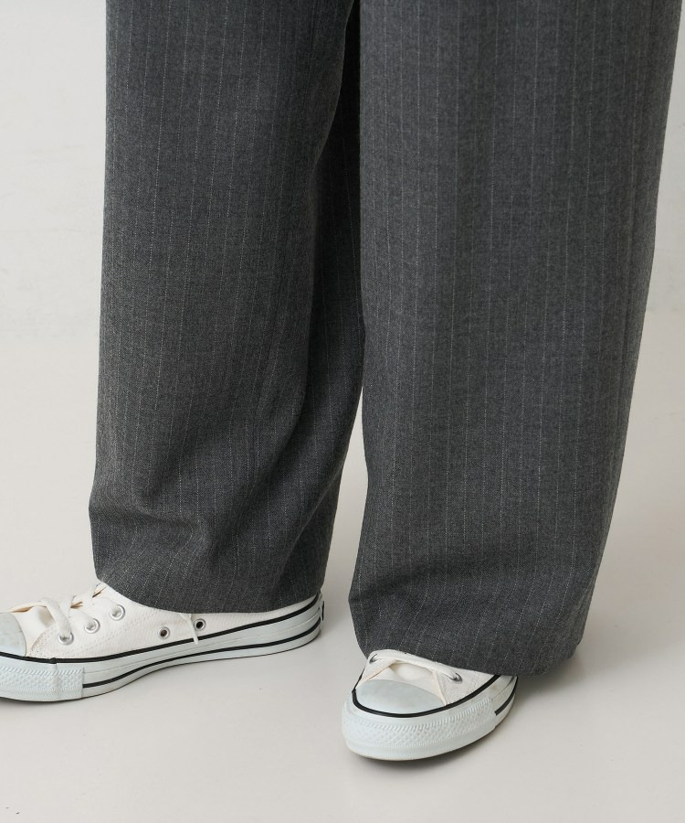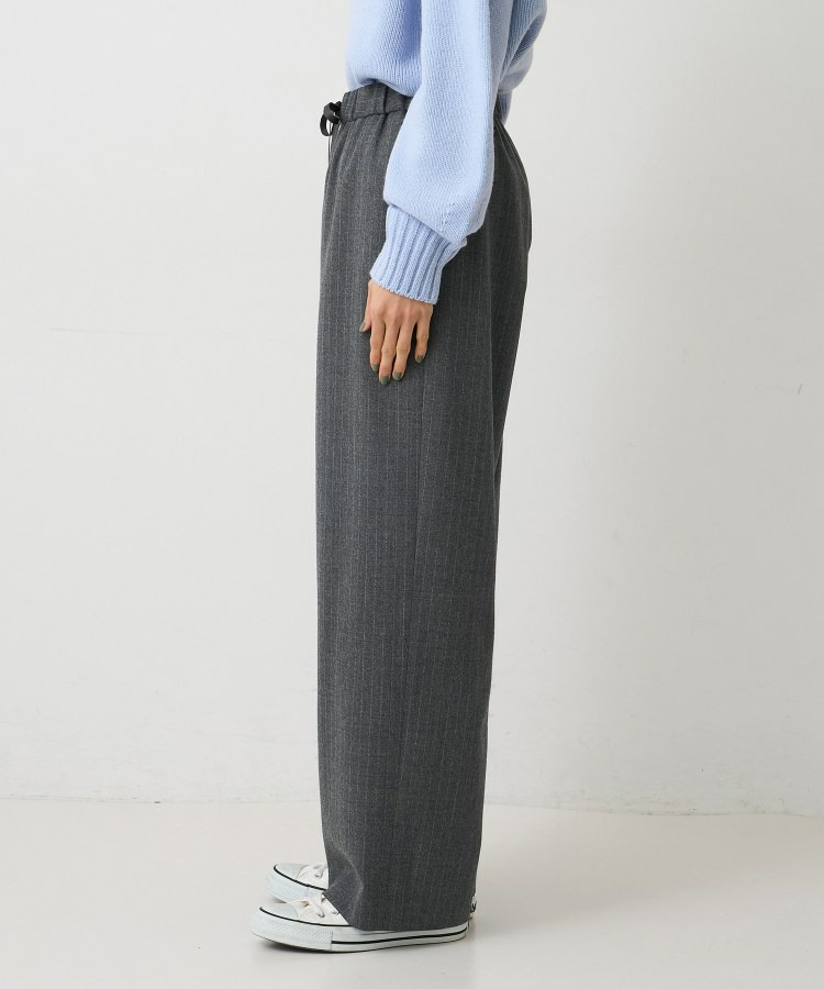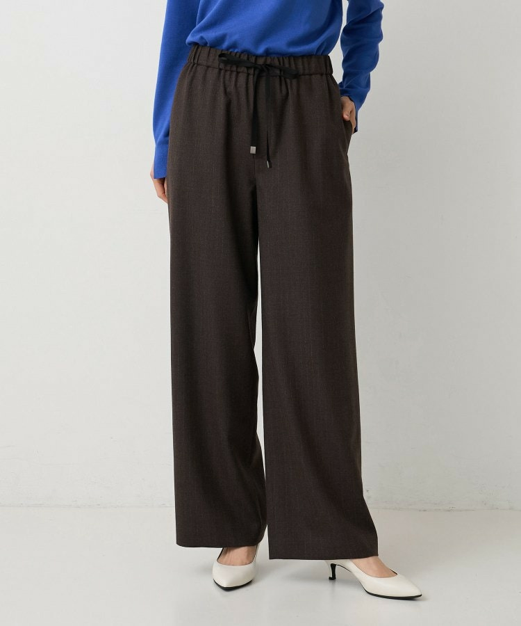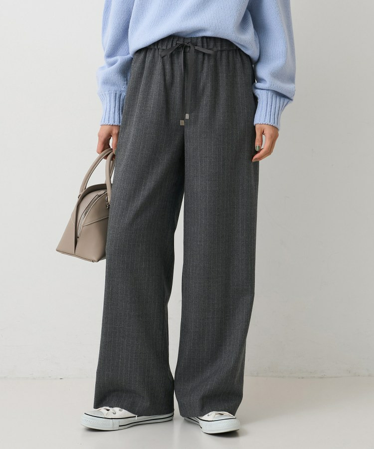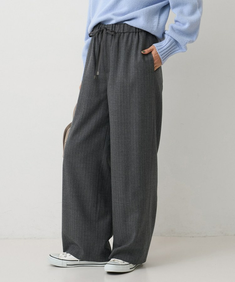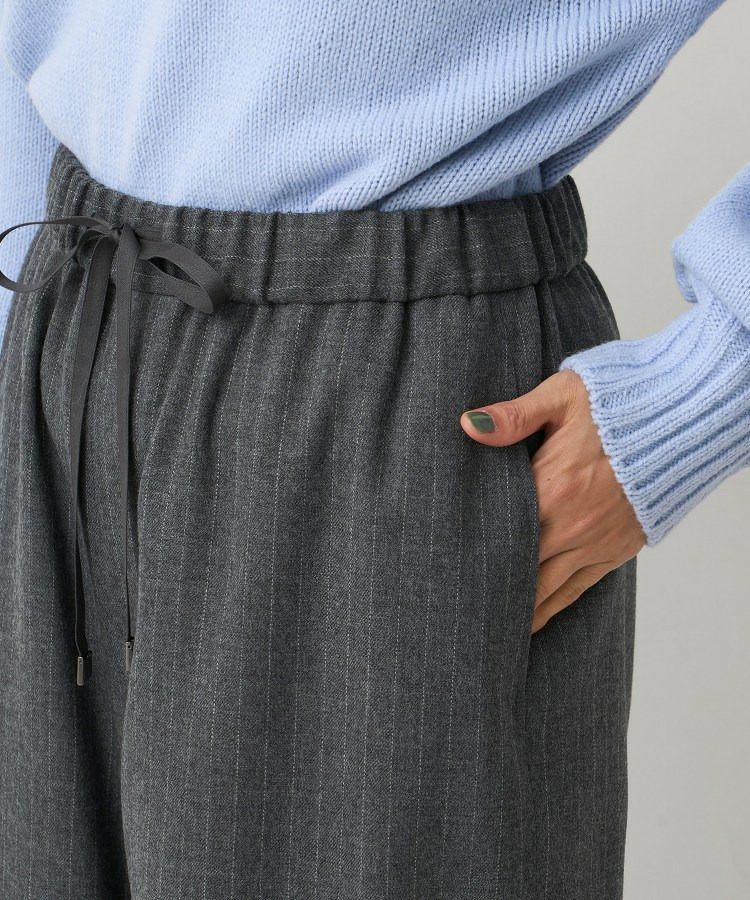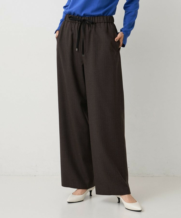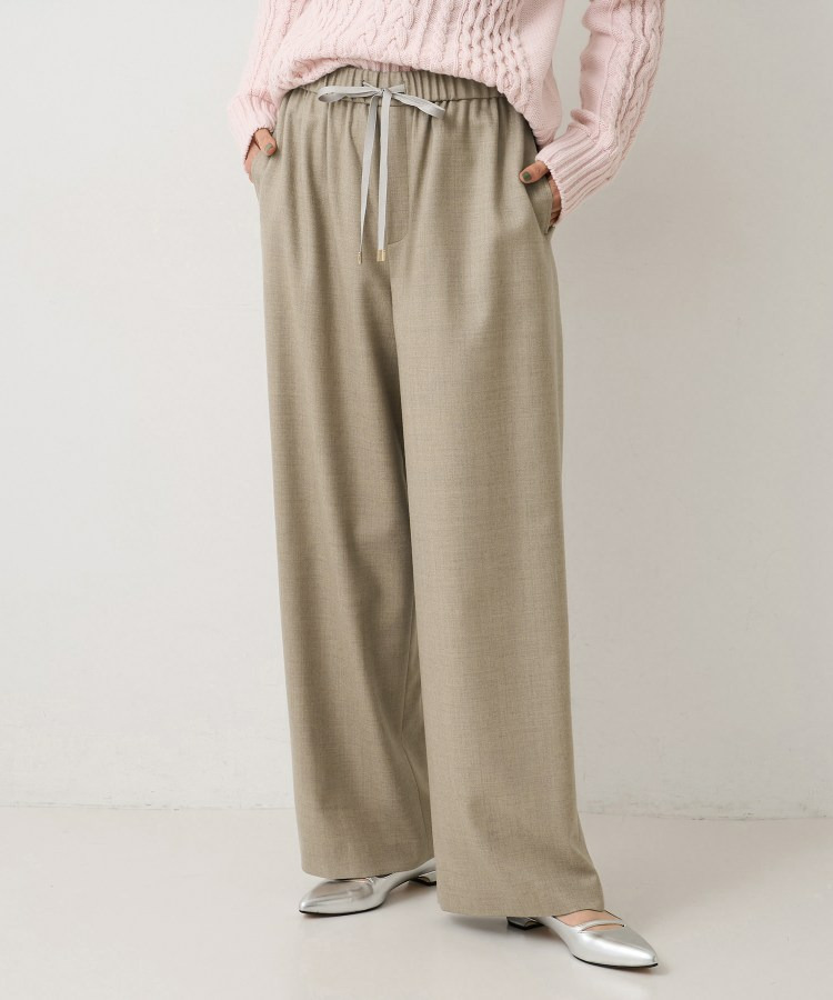 ウエスト部分にドローストリングを採用することで、快適な穿き心地を実現したワイドパンツ。
