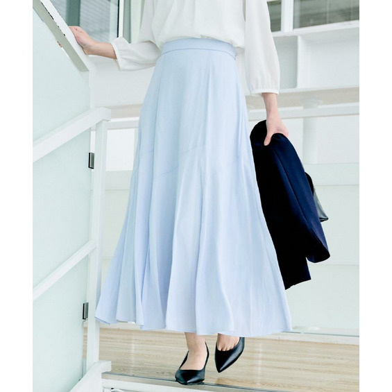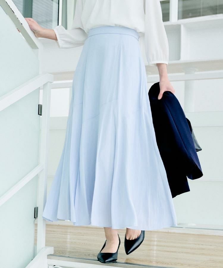 いろんなシーンに使いやすいスカートはベーシックカラーに加えてサックスブルーが新鮮です。