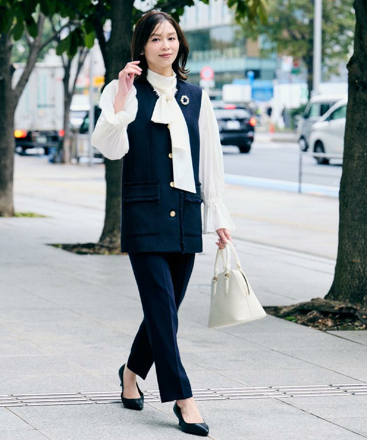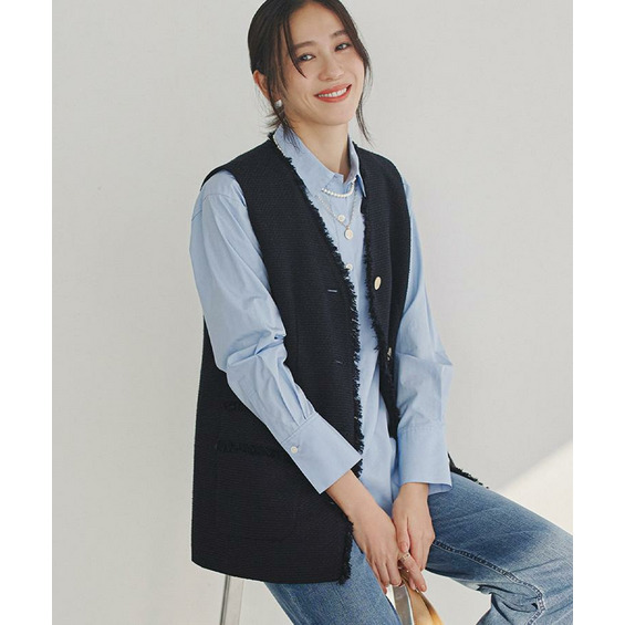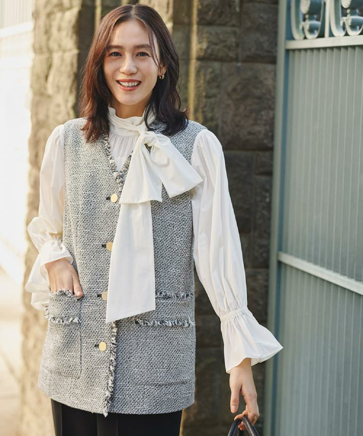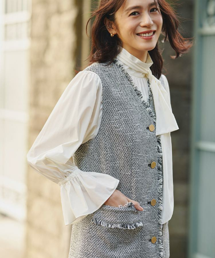 汎用性の高いツイードジレはカラーによって大きく印象が異なる3色展開。
