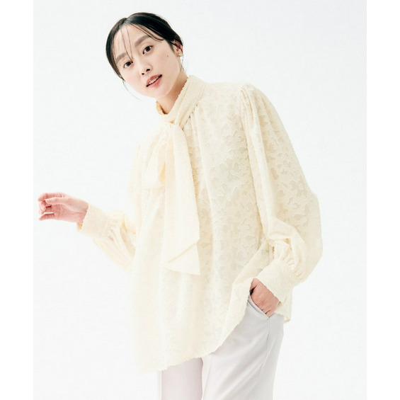 カットジャカード ボウタイブラウス