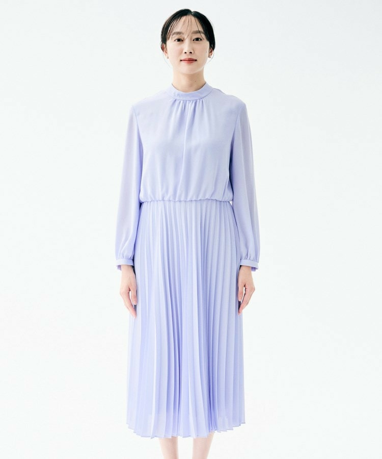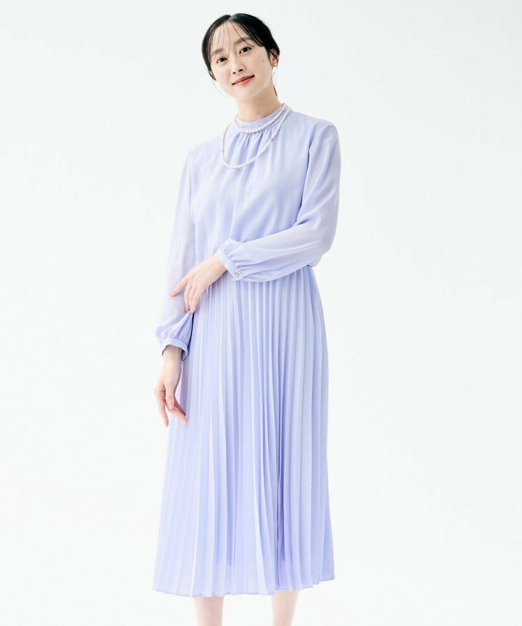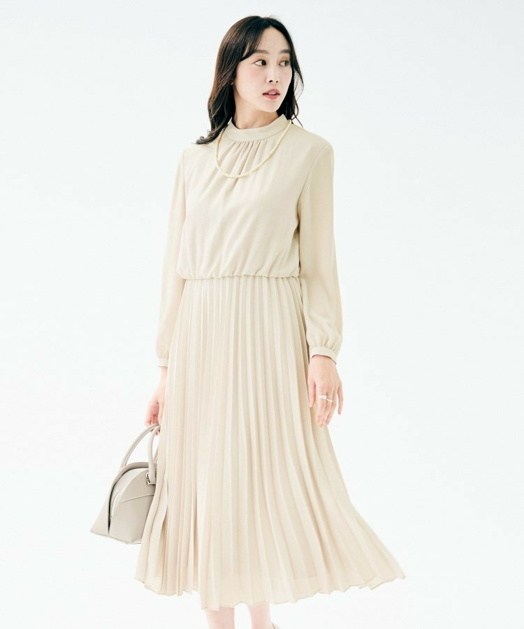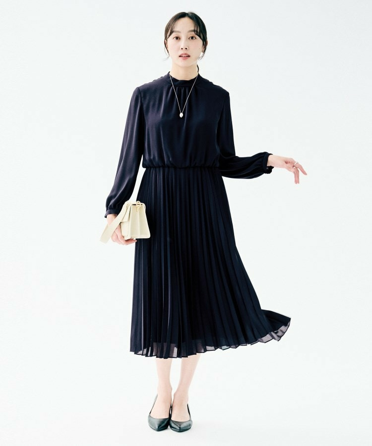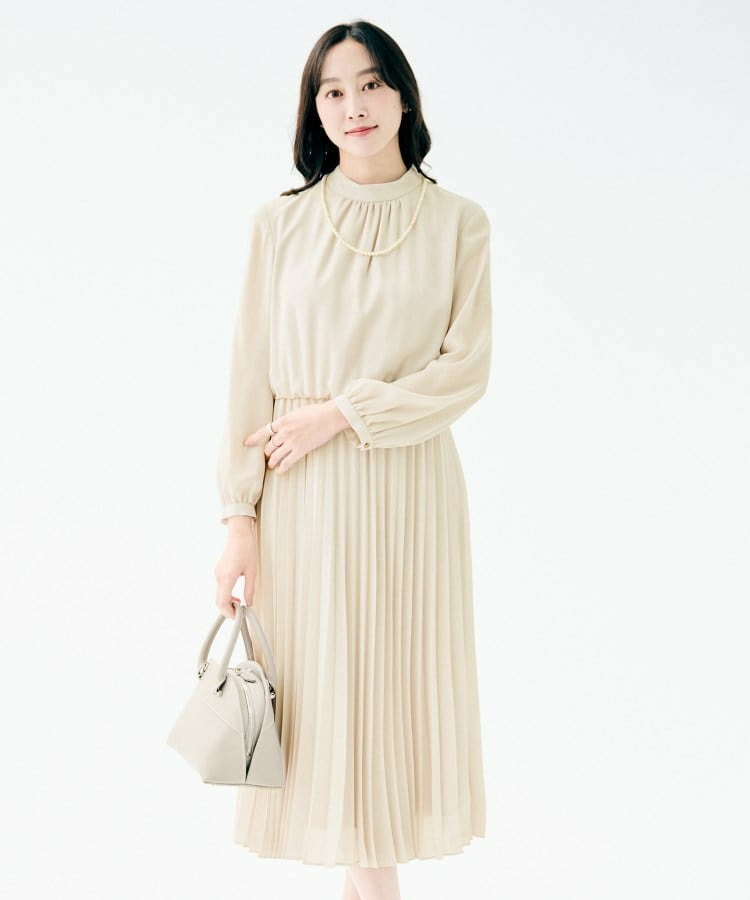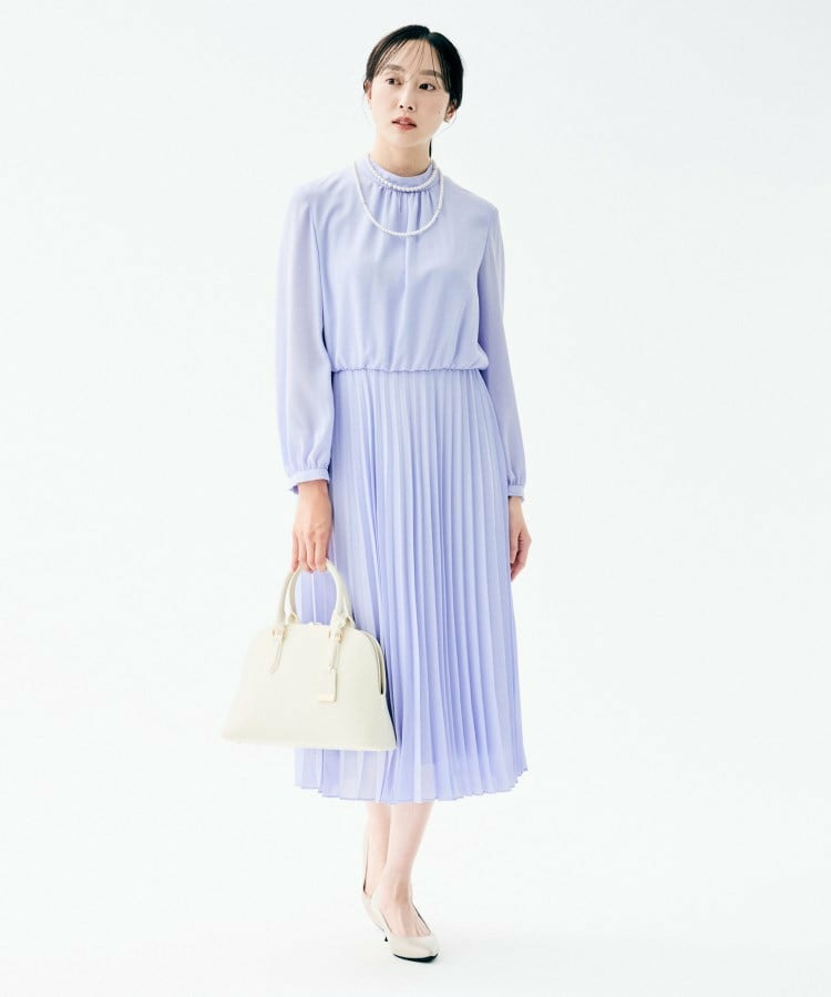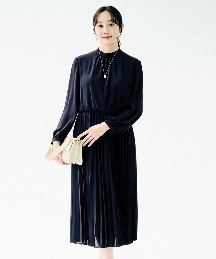クラシカルなハイネックデザインに、フェミニンさを引き立てるボウタイをあしらったロング丈ワンピース。