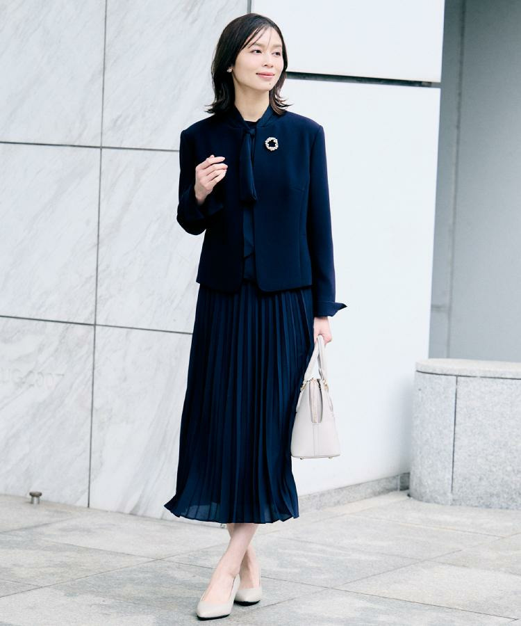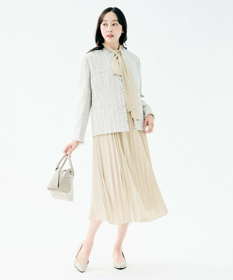 スカート部分は軽やかなプリーツ仕様で、歩くたびにエレガントな動きを演出します。