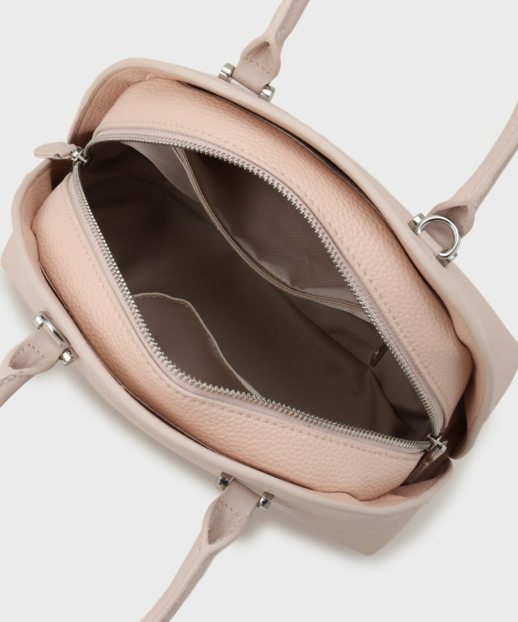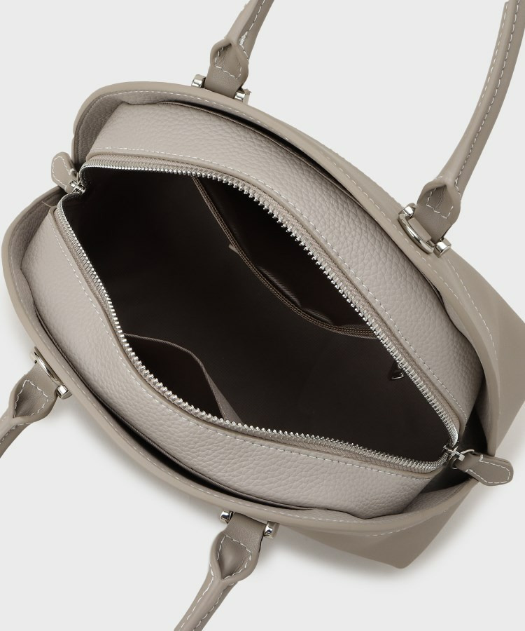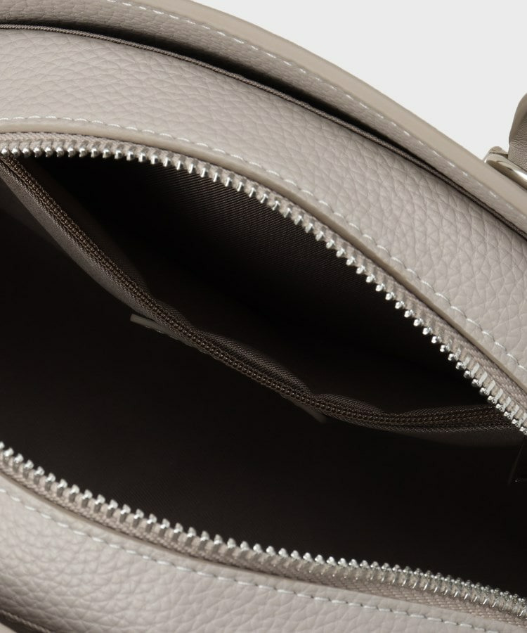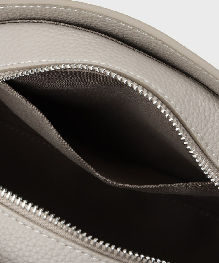 表面はスムース、内側マチはシュリンク型押しの異素材MIXで、開けたときも品よく見える仕立て。