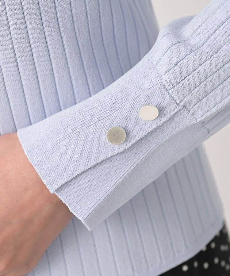 袖口のスリットが手首をすっきりと見せ、メタルボタンがさりげないアクセントに。