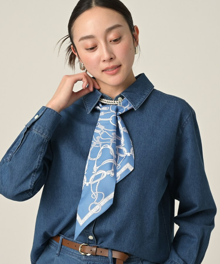 Tシャツやシャツの襟元にひと結びして垂らすだけで、縦ラインが強調されて洗練された印象になります。