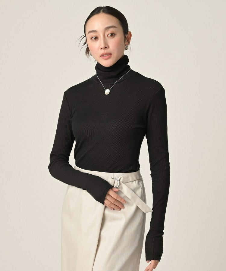 • 【洗える/レイヤードインナー】ナチュラルテレコハイネックプルオーバー1