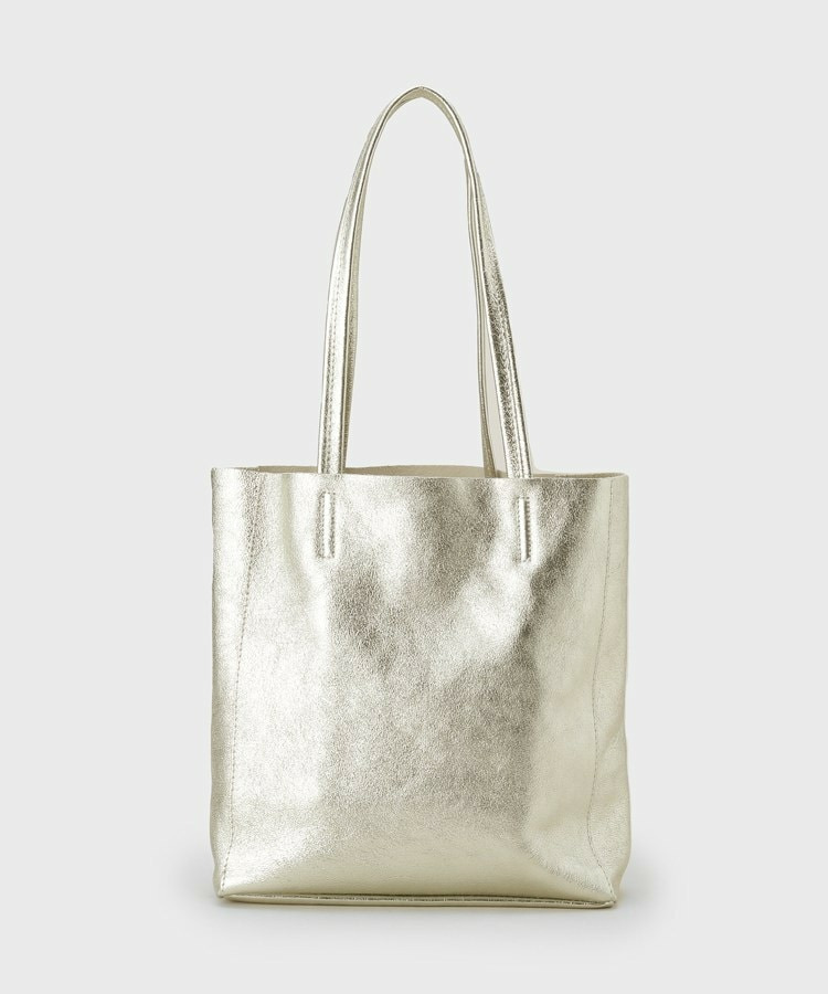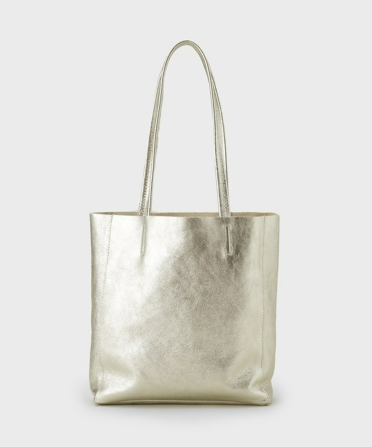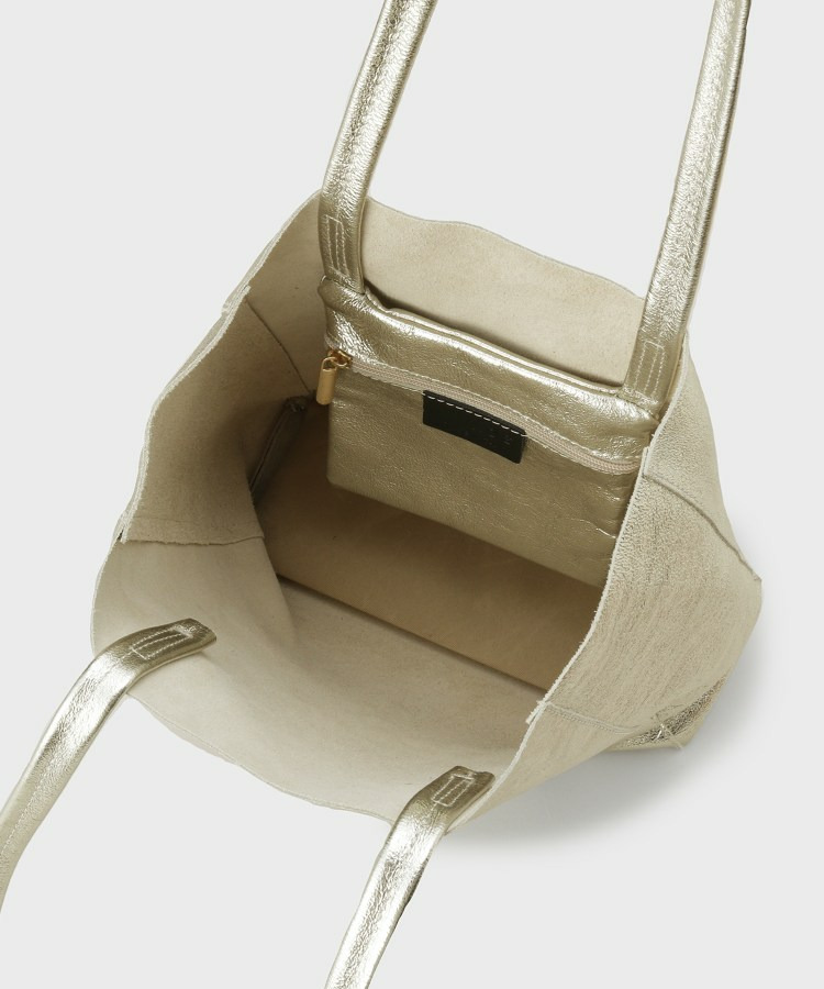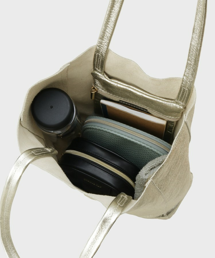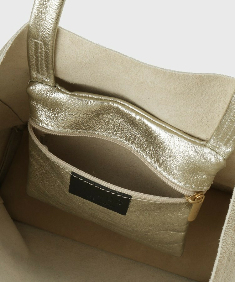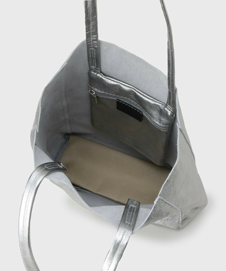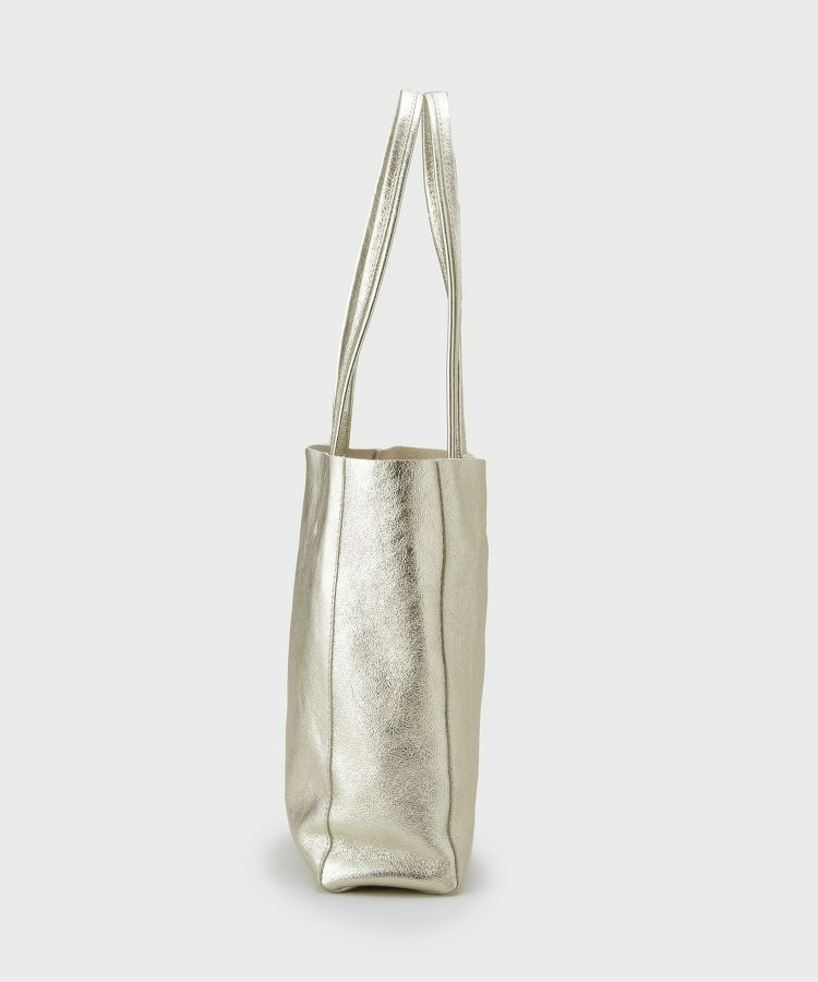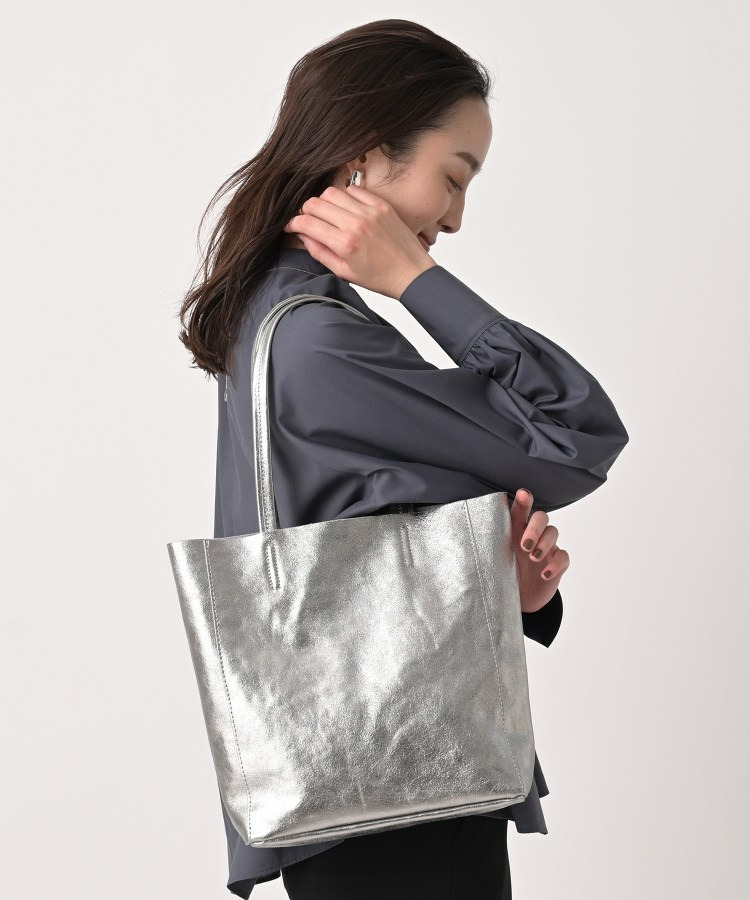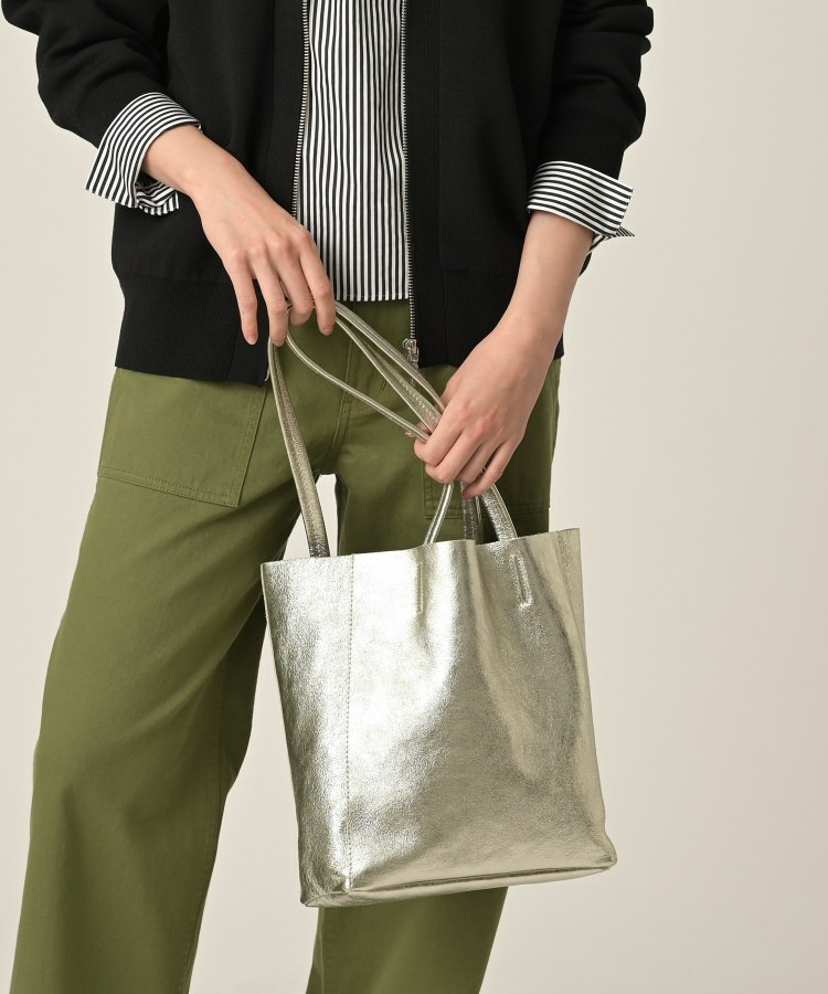 柔らかなレザーに上品なメタリックの艶をまとい、カジュアルながらもリッチな印象です。