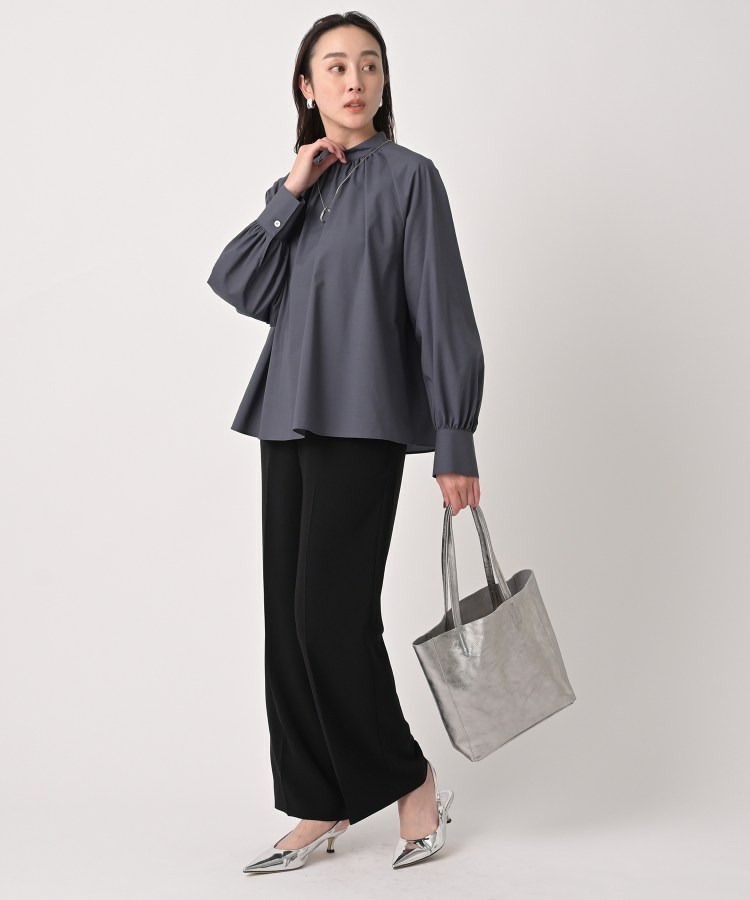 デニム×カットソーなどのカジュアルに合わせても、メタリックの光沢で大人の品を添えられます。