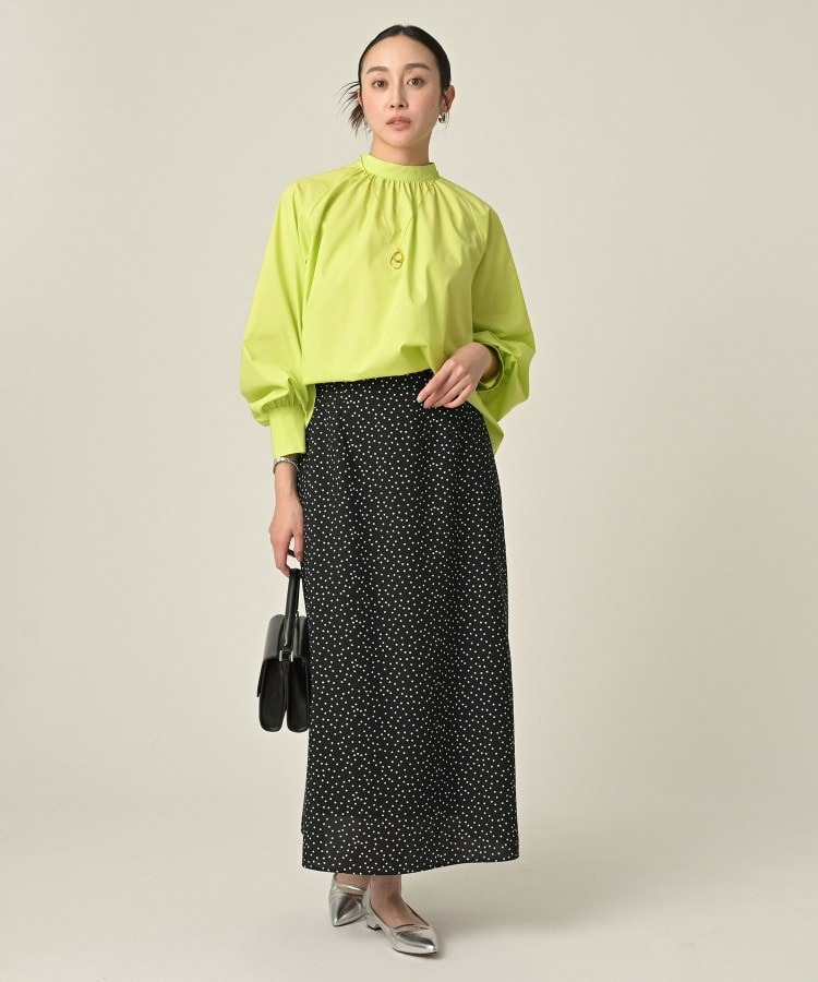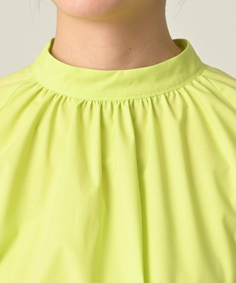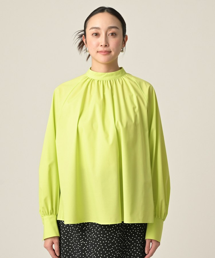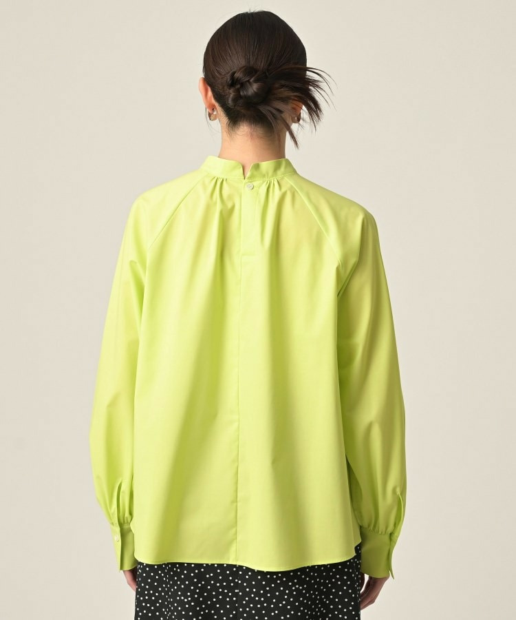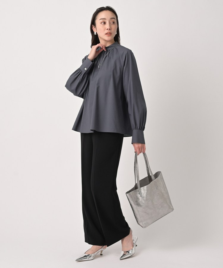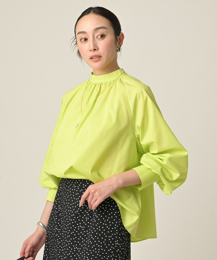 首まわりに上品なアクセントを添えてくれるスタンドネックがポイントのブラウス。