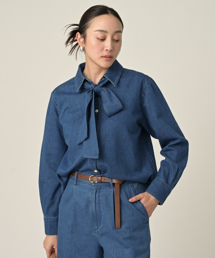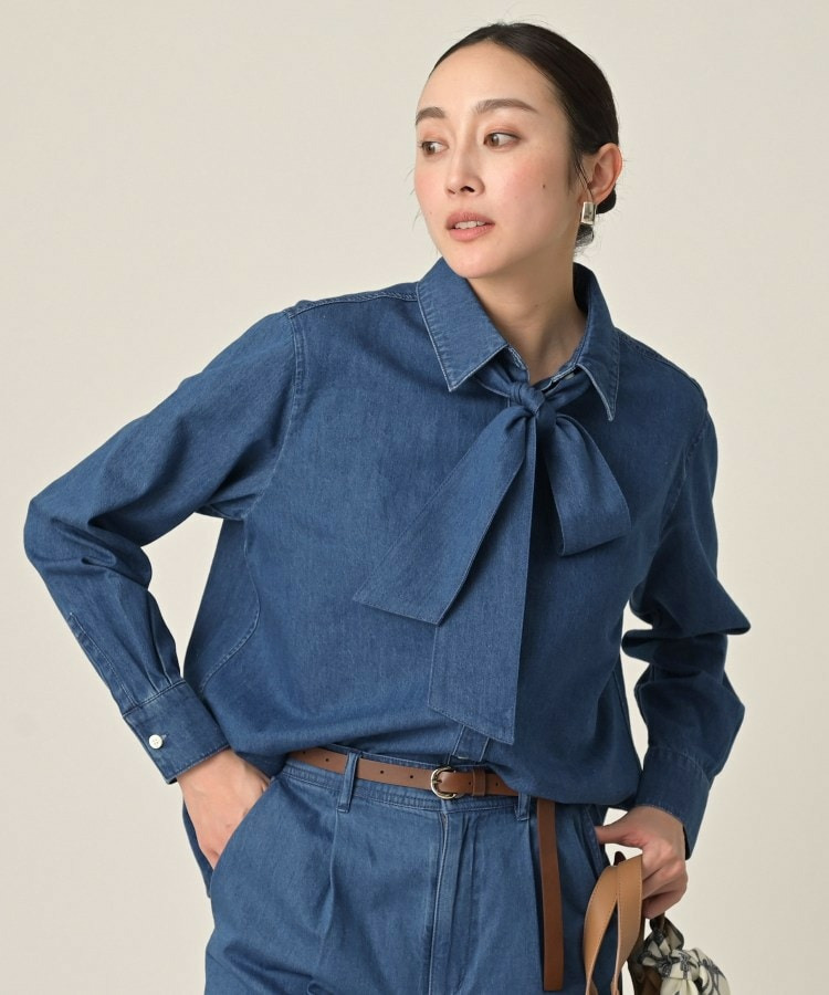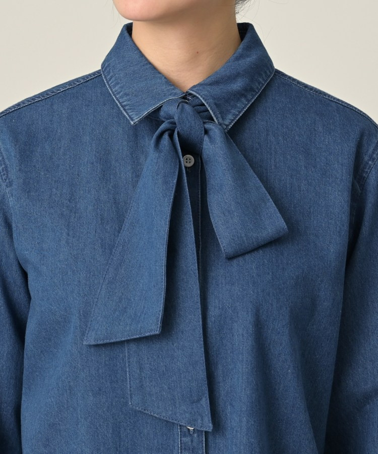柔らかなデニム素材に、取り外し可能なボウタイがアクセントになった一着。
