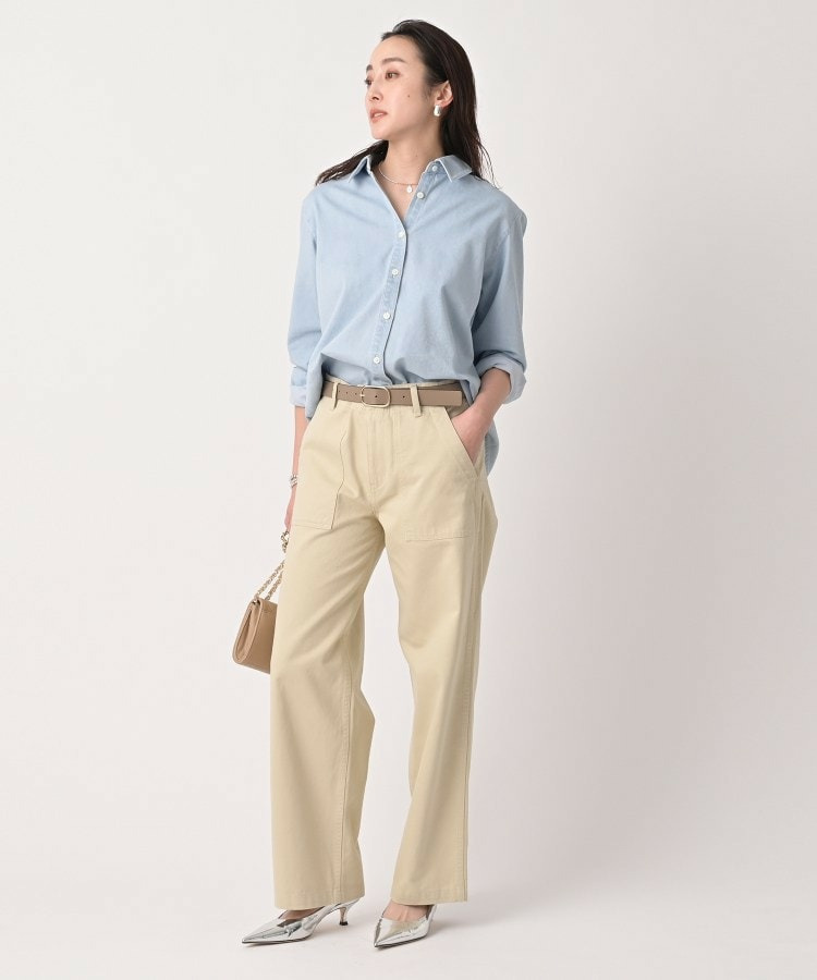 シンプルなシャツカラーがすっきりとした印象を与え、どんなアイテムとも相性◎。