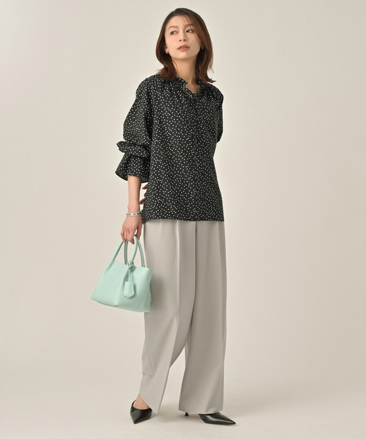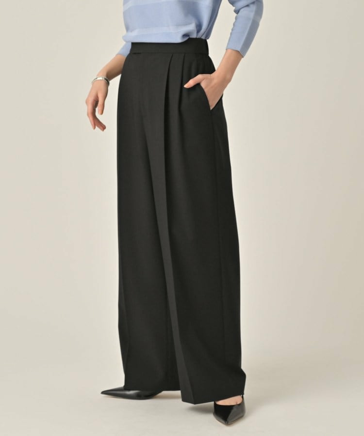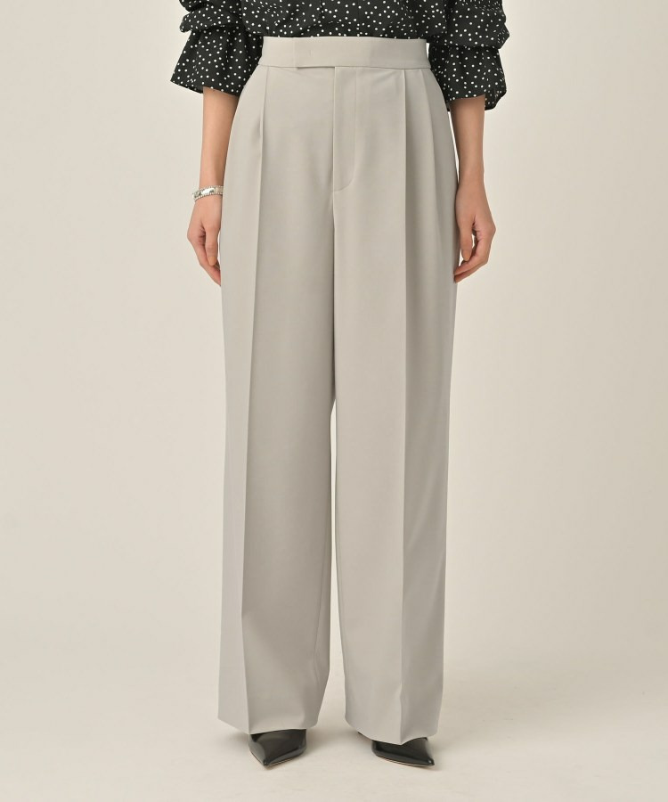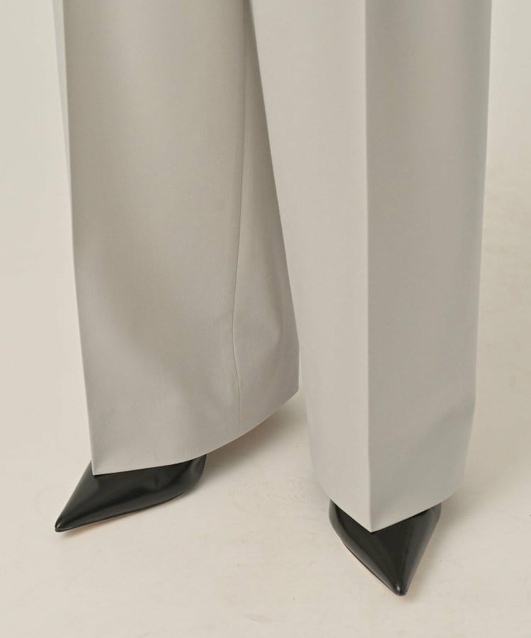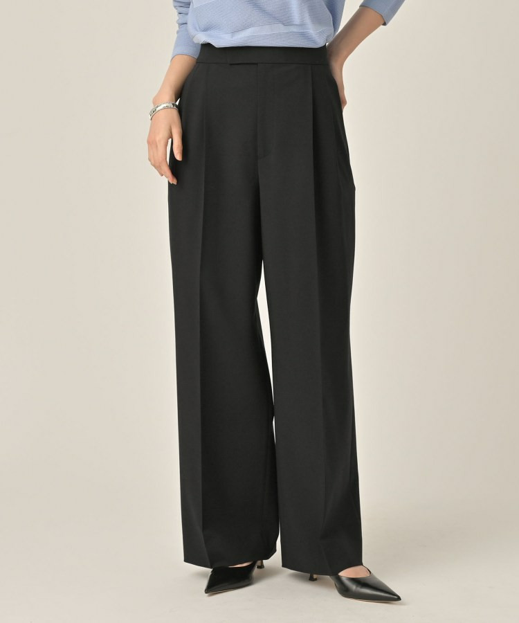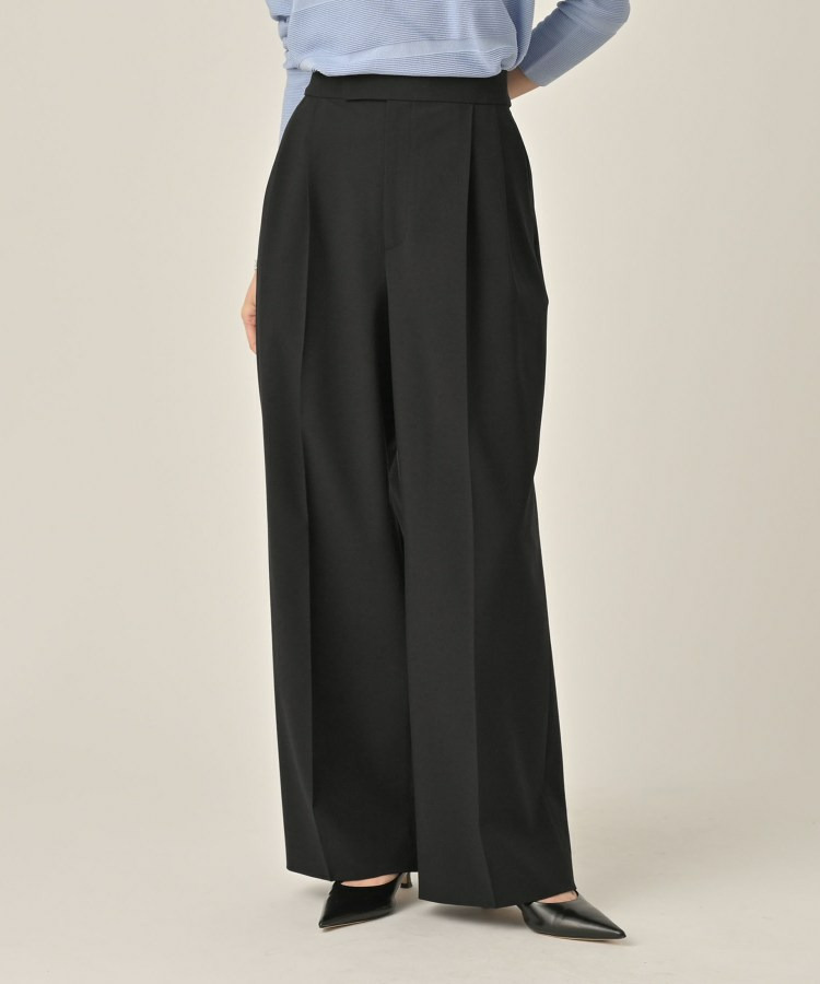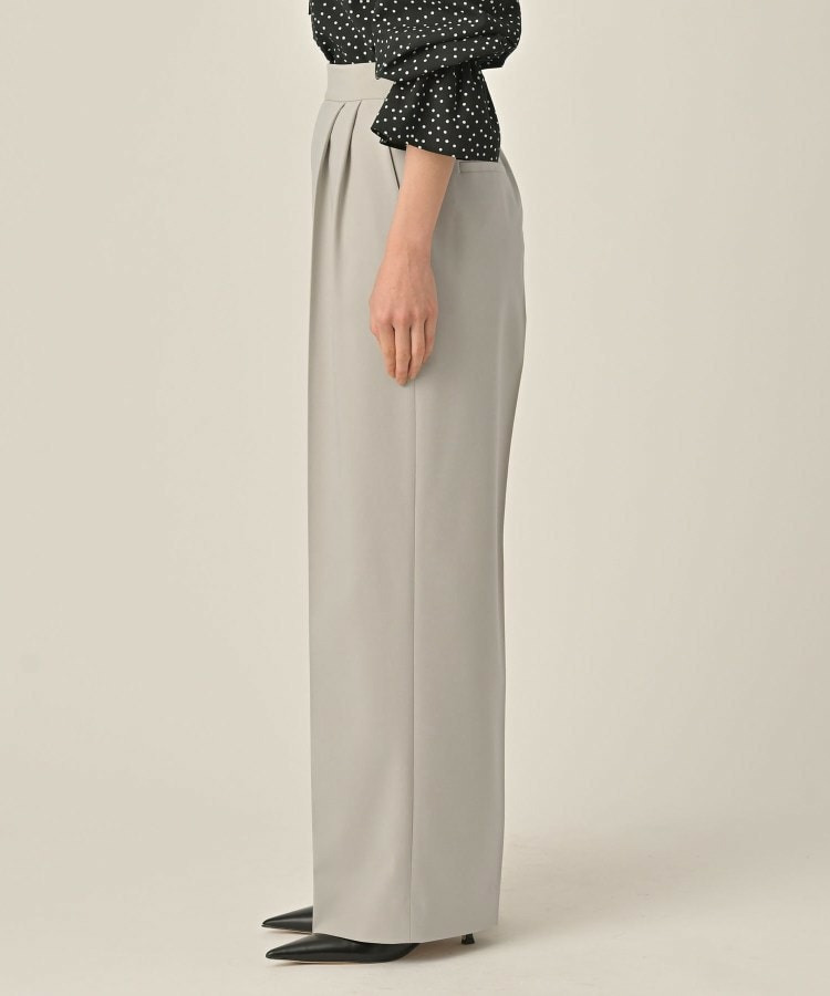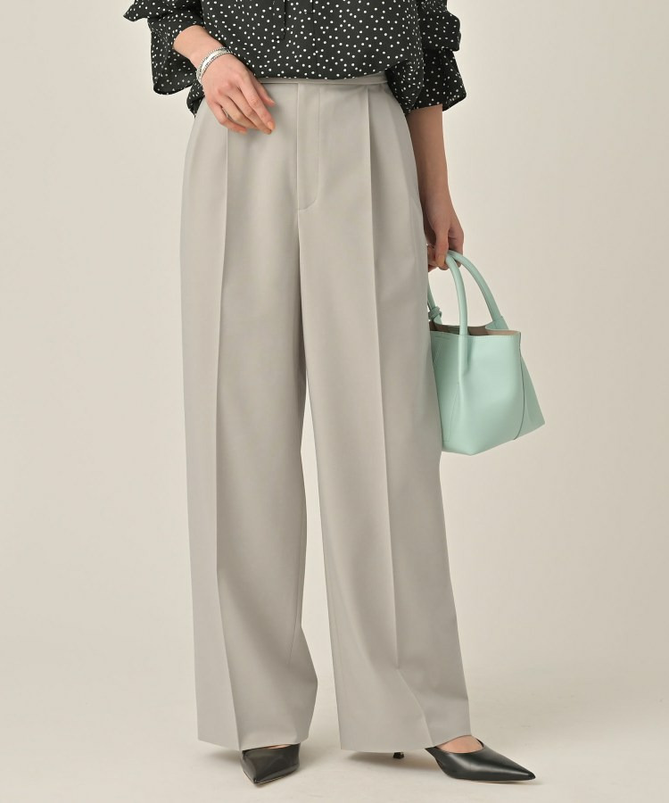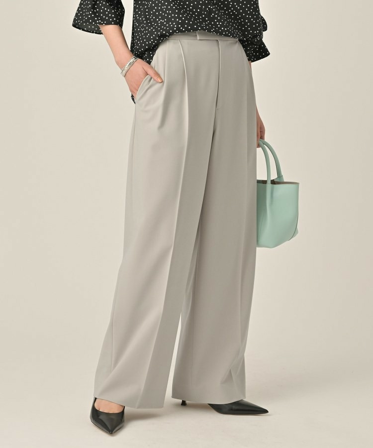 腰周りには余裕をもたせつつ、裾に向かって程よく広がるワイドシルエットが脚を長く見せてくれます。