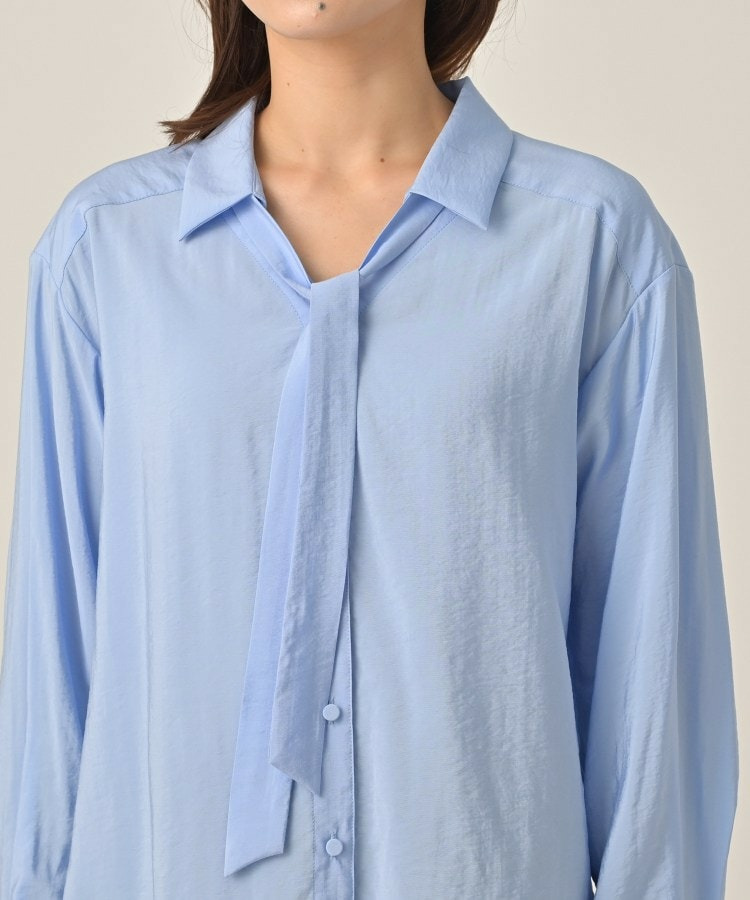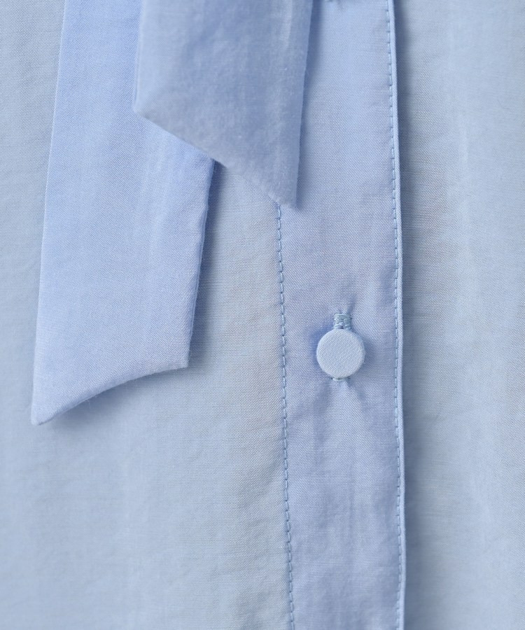 後ろボタンで簡単に取り外し可能なボウタイ付きのブラウス。