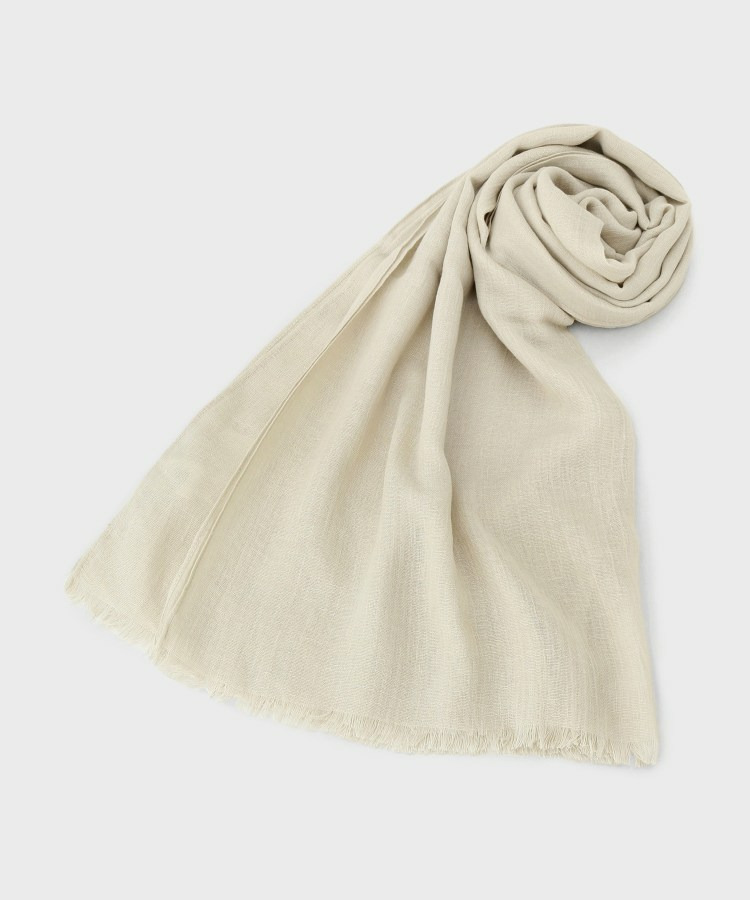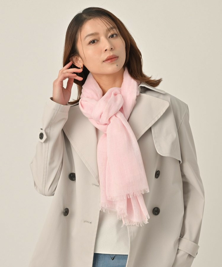 ほどよい透け感があり、首元に巻いても軽く、清涼感のある着用感です。